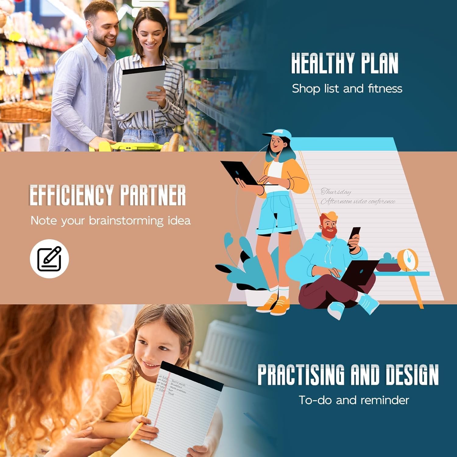 - 【Double-Sided Printing】:The 8.5" x 11" writing paper pad is designed with double-sided printing, providing you with twice the writing space without wasting any paper. Each pad contains 30 sheets with 60 pages, Valuable note pad paper gives you plenty of space to record your ideas/ to-do. Make the most of these legal pads to note brainstorming idea/ homework practicing/ shopping list, etc