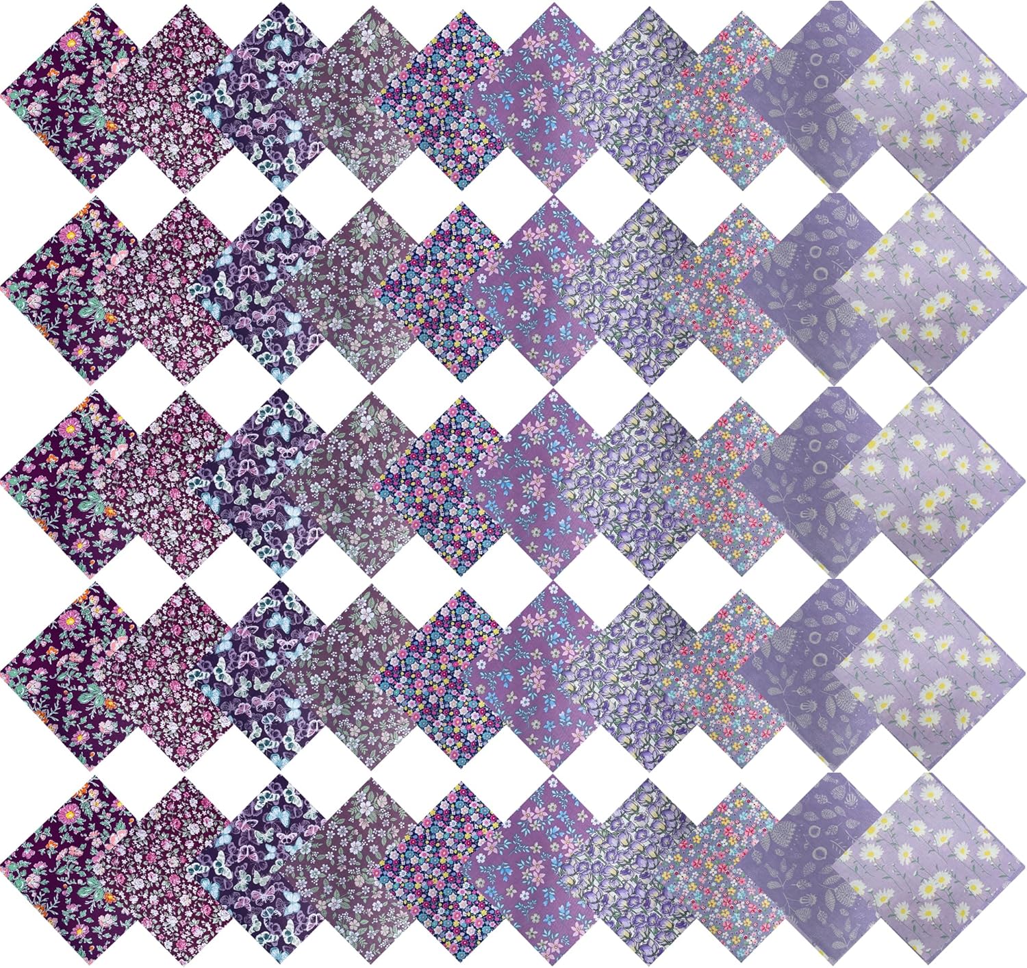 - Material and Size: These quilting fabric are made of 100% high-quality cotton, featuring soft and strong fabric bundles. Each sheet measures 5 x 5 inches. This set includes 50 pieces of purple printed fabric squares, providing a variety of colors to satisfy your multiple craft sewing needs.