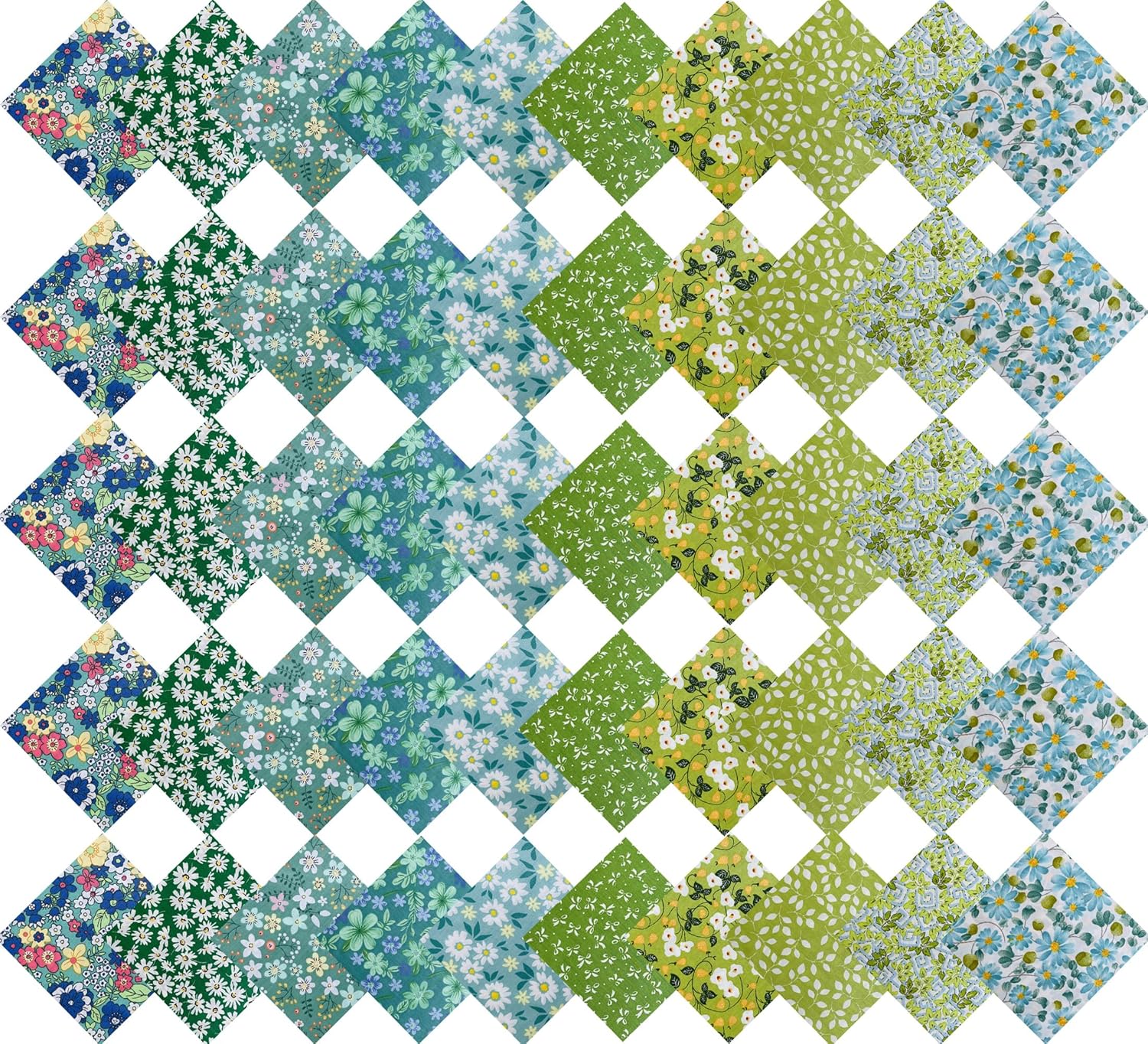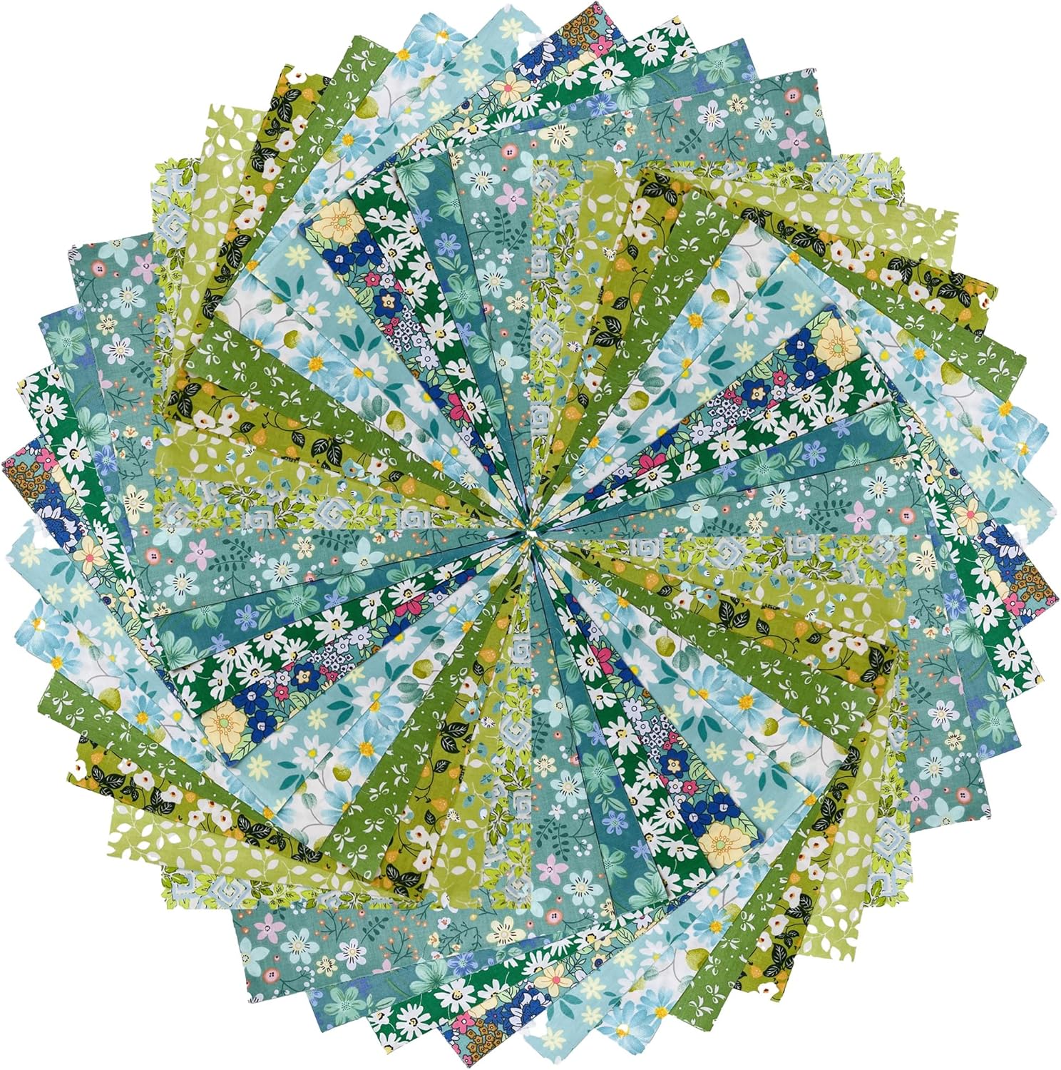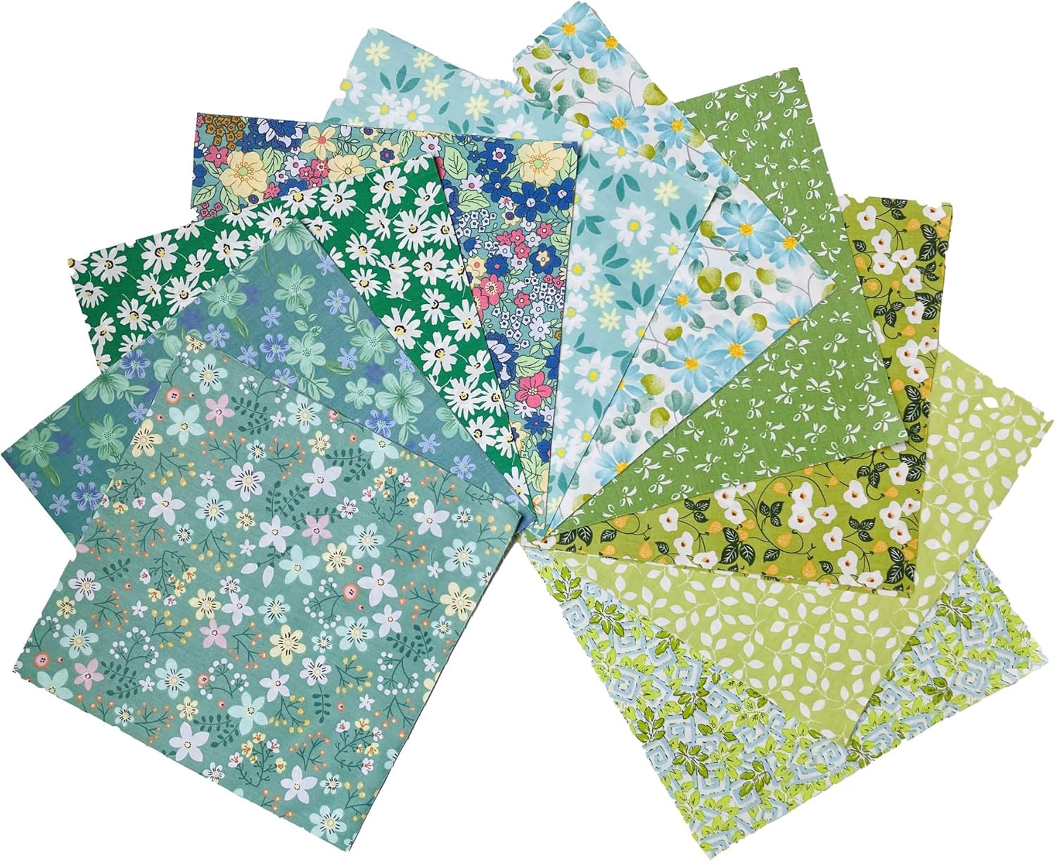 HANPATQUI 50PCS 10 x 10 inch Green Printed 100% Cotton Fat Quarters Fabric for Sewing and Quilting Bundles Precut Fabric Square for DIY Craft Patchwork