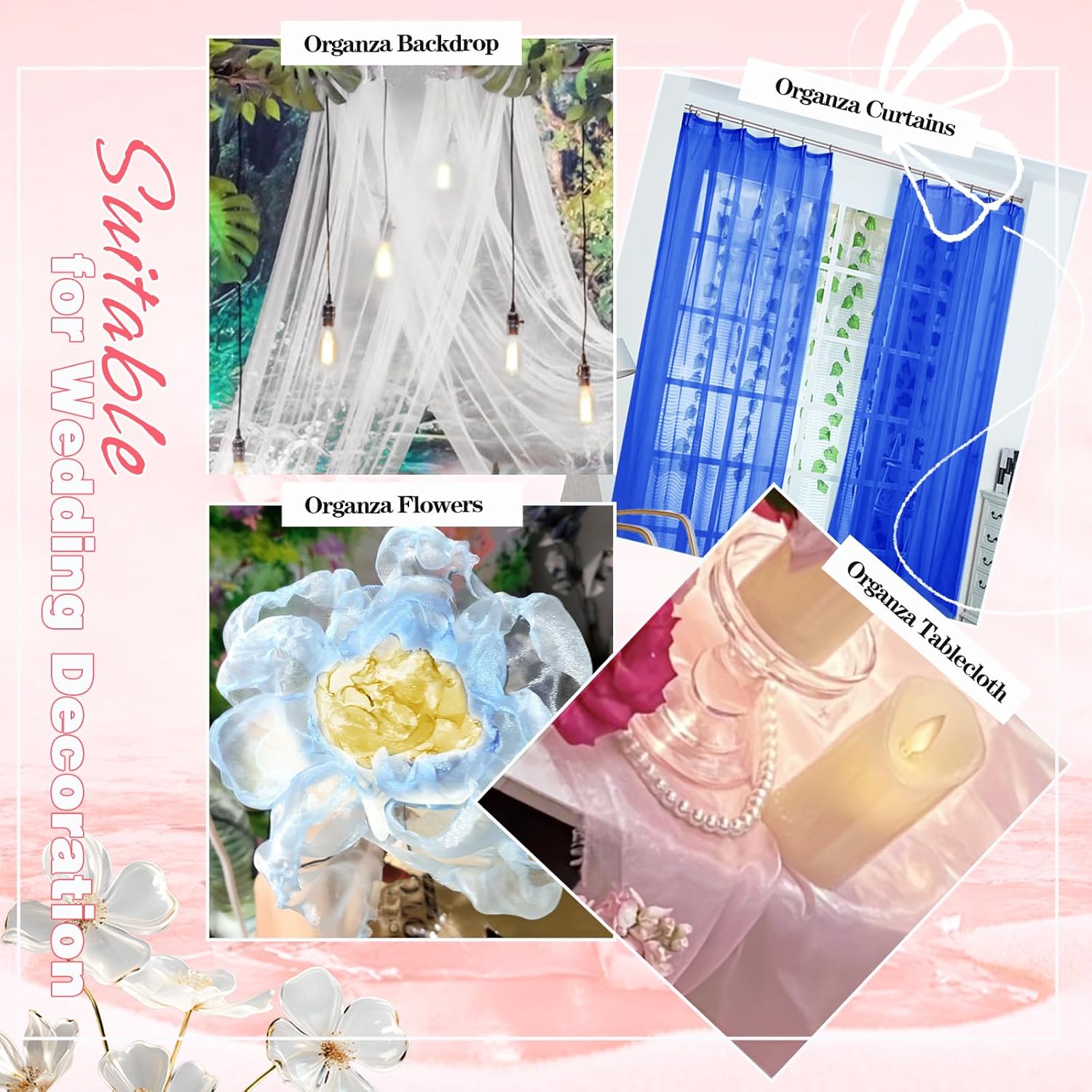- What Will You Receive: 1 yard organza fabric (Pre-cut), Size: 36 x 60 Inch (L*W). Available Color: Gold, White, Royal Blue, Rose Gold, Black, Red, Hot Pink, Light Pink, Light Purple, Light Blue. You can give full play to your handicraft ability and creativity