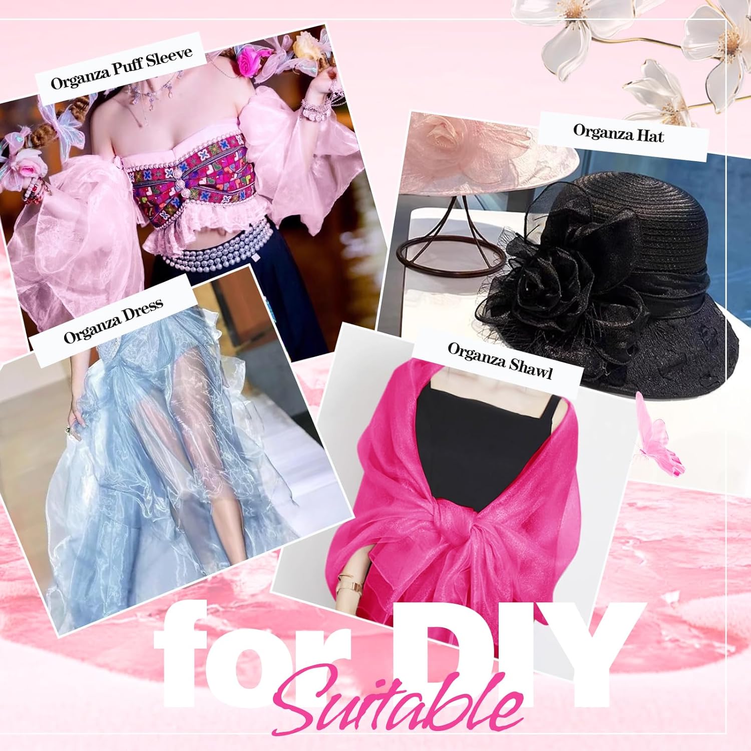 - What Will You Receive: 10 yards organza fabric (Pre-cut), Size: 360 x 60 Inch (L*W). Available Color: Gold, White, Royal Blue, Rose Gold, Black, Red, Hot Pink, Light Pink, Light Purple, Light Blue. You can give full play to your handicraft ability and creativity