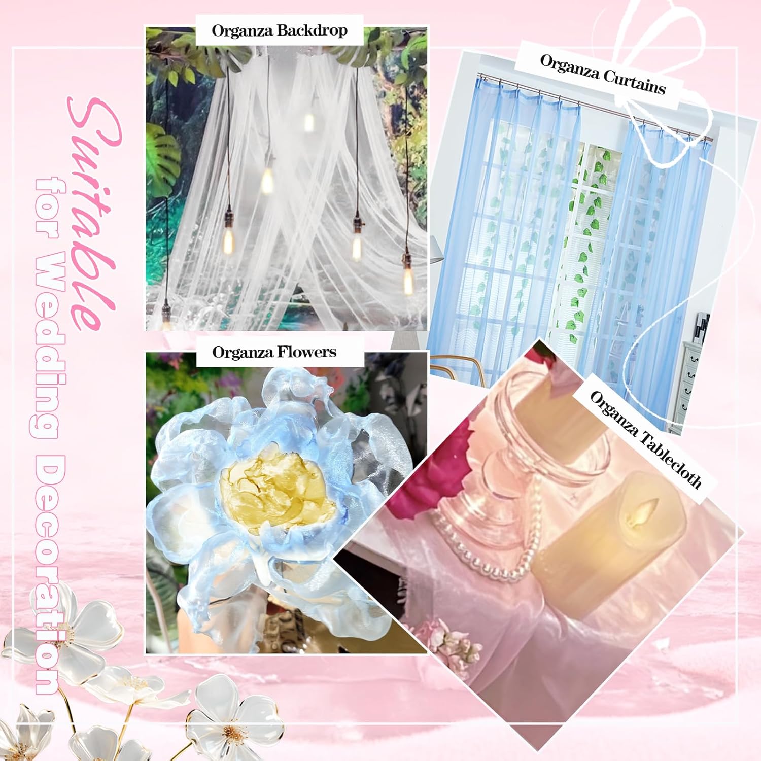 - What Will You Receive: 10 yards organza fabric (Pre-cut), Size: 360 x 60 Inch (L*W). Available Color: Gold, White, Royal Blue, Rose Gold, Black, Red, Hot Pink, Light Pink, Light Purple, Light Blue. You can give full play to your handicraft ability and creativity