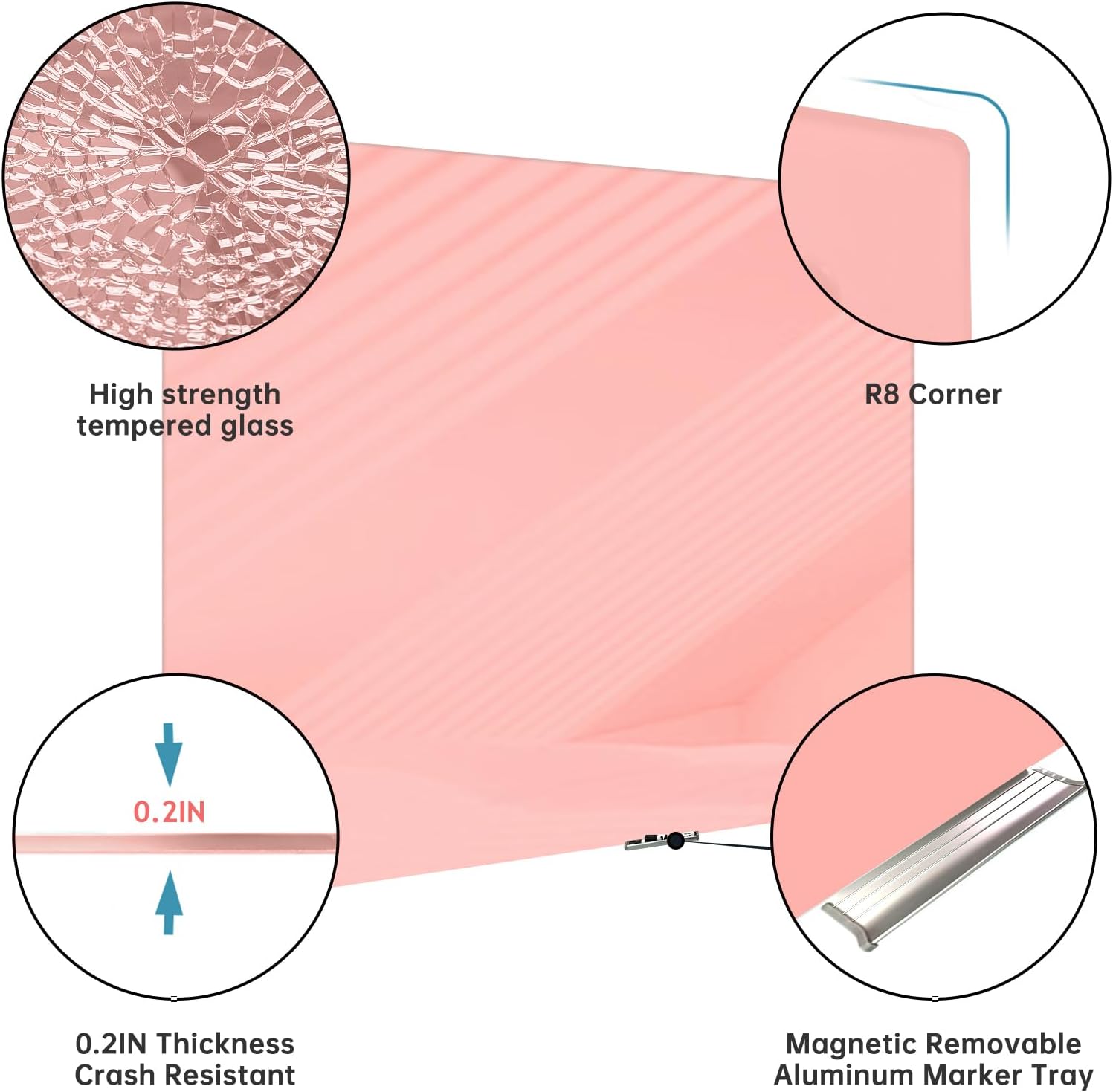 Magnetic Glass Whiteboard - Glass Dry Erase Board 48"x36" Large Frameless Glass Board for Walls Office School and Home, Pink