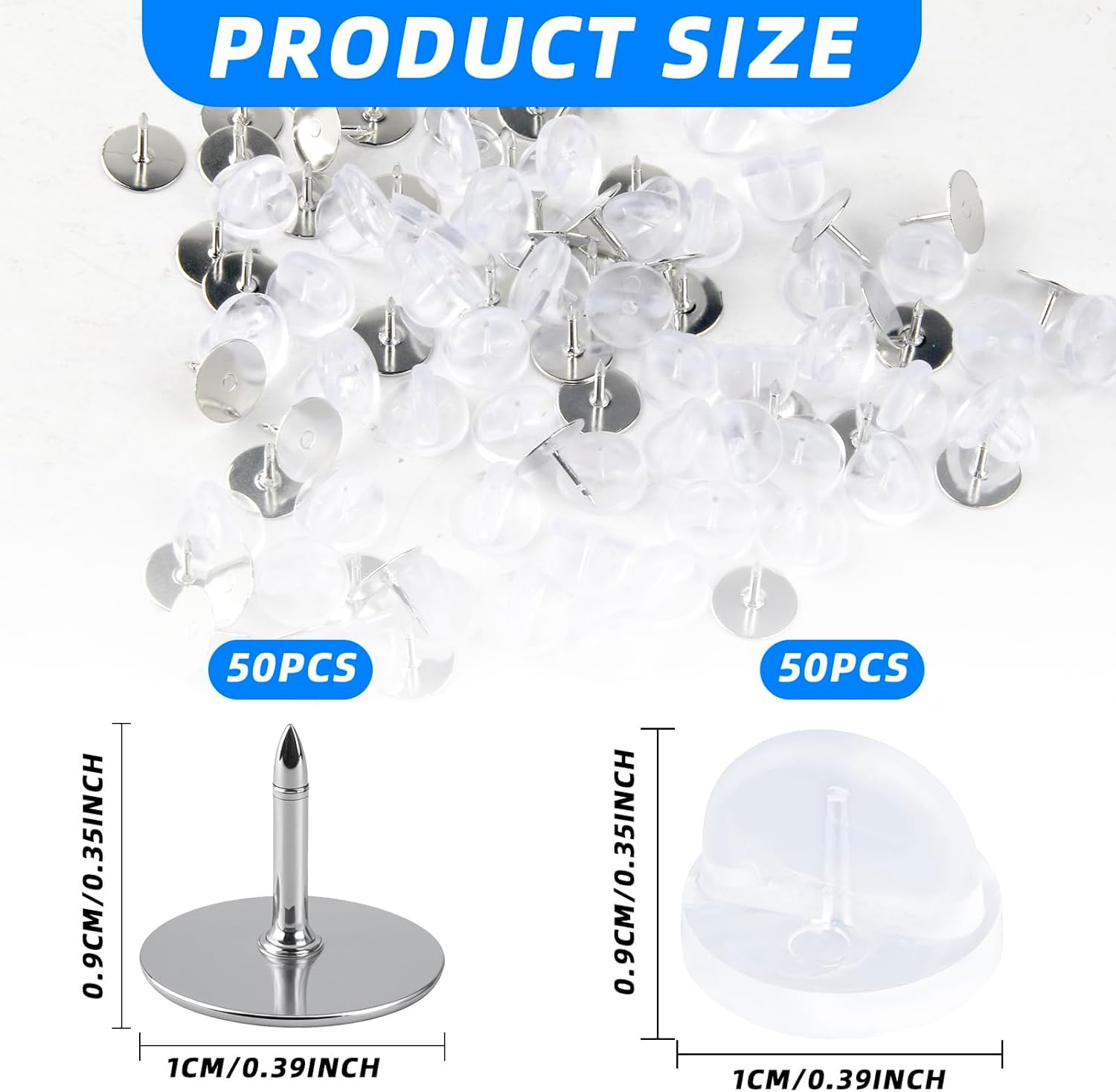 - Value Pack: The kit includes 50 clear novelty pin backings and 50 blank pins. The pin backings are protective backings for loose hanging ropes and buckles, which can be securely fixed to clothes or backpacks.The size of the back of the rubber clutch is 11 millimeters in diameter; The size of the needle is 10mm in diameter and 8mm in length