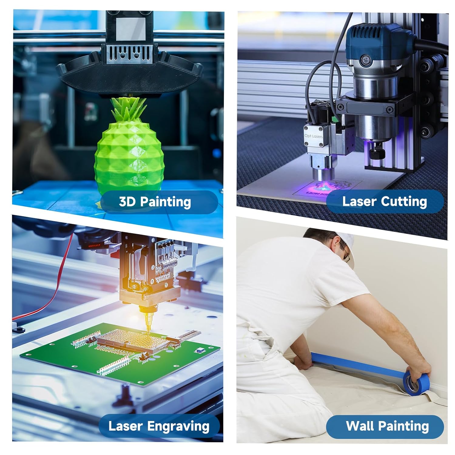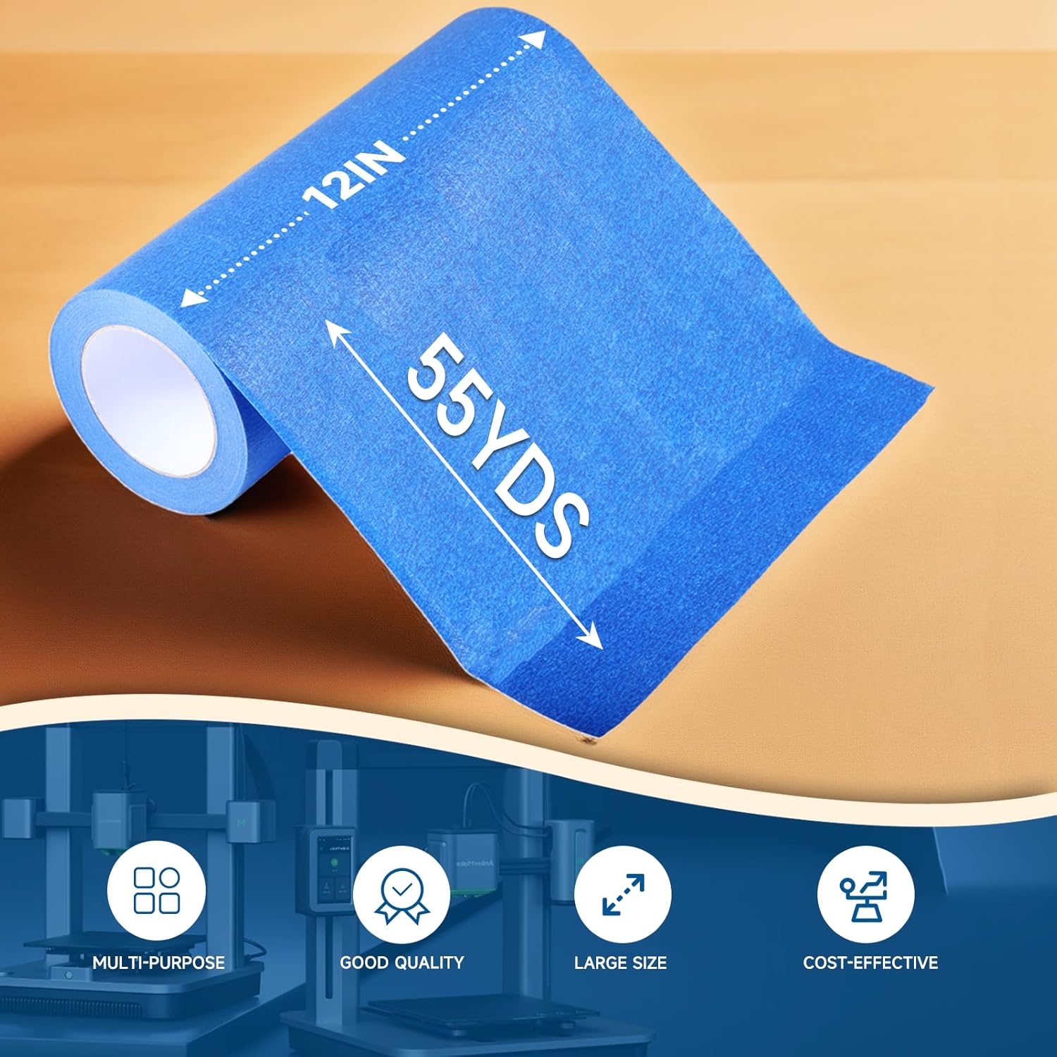 - Large Size Painters Tape β Save time and money with our 55-yard, 12-inch wide painters tape. Perfect for 3D printing, laser cutting, and engraving, it covers more area with fewer strips, providing precise, high-performance masking.