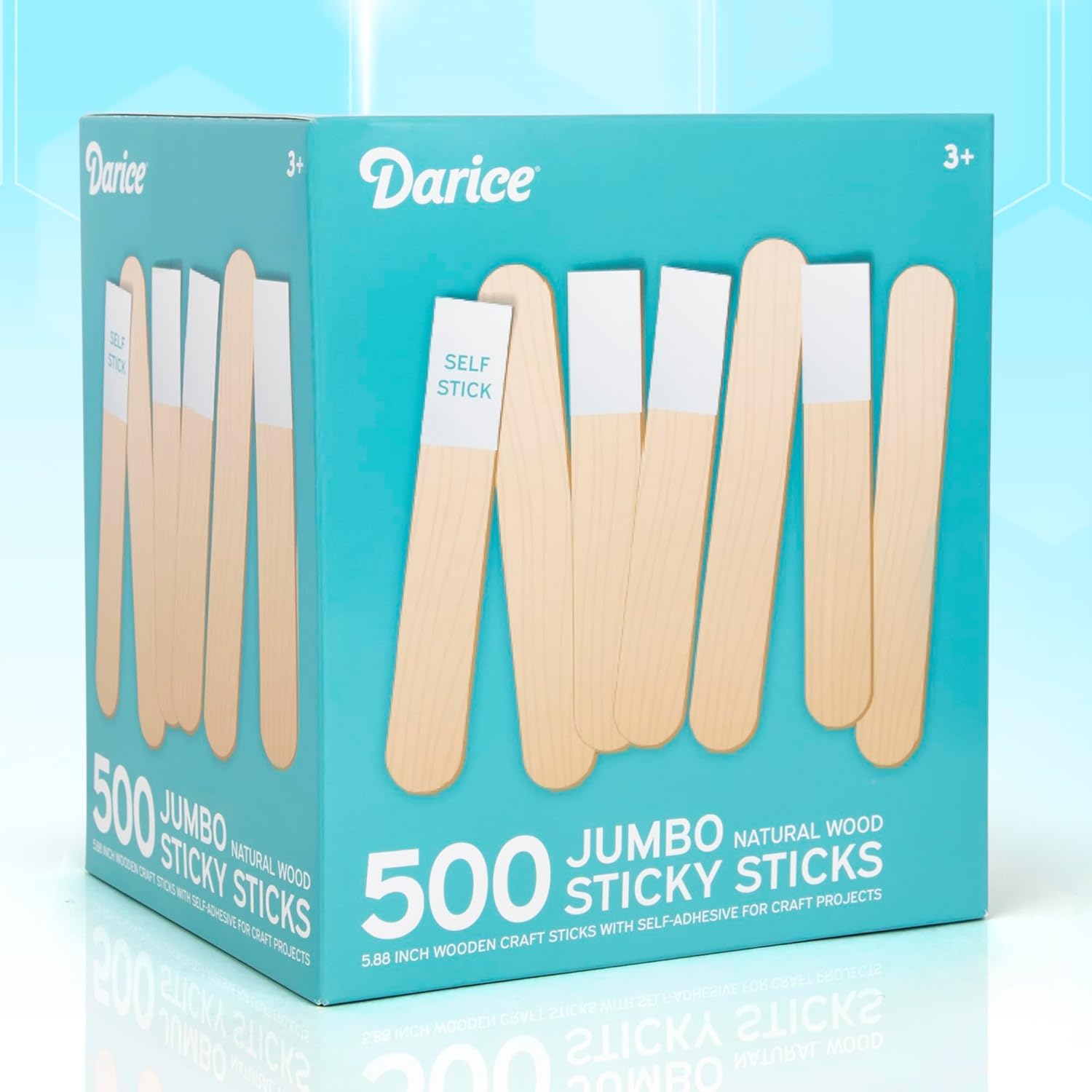 Darice Self-Adhesive Popsicle Sticks for Crafts – 500 Jumbo Wooden Sticks with Adhesive Tips, 6” x 1”, Mess-Free Arts and Crafts for Classroom, STEM, Home (Ages 3+)