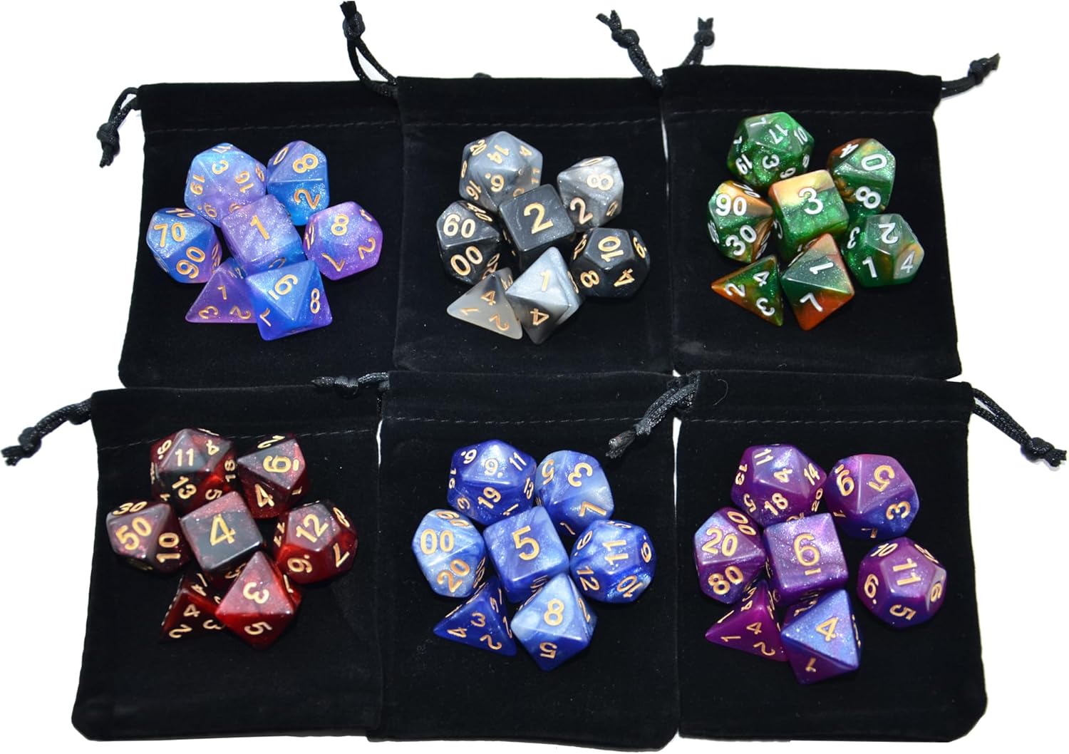 SmartDealsPro 6 x 7 Sets (42 pcs) Glitter Polyhedral Dice Sets with Pouches for DND RPG MTG Dungeon and Dragons Table Board Roll Playing Games D4 D8 D10 D12 D20 (Color 2)