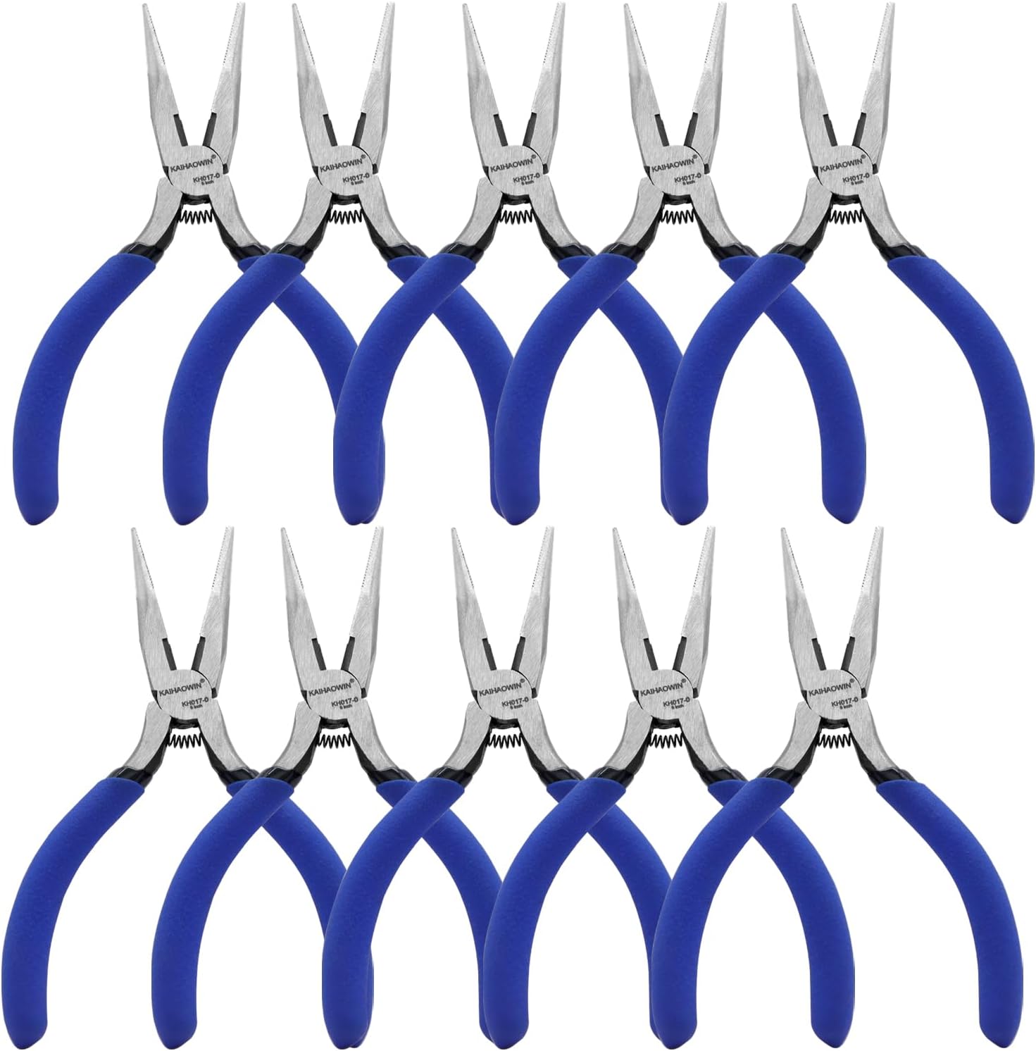 Mini Needle Nose Pliers 5"-10 Pack KAIHAOWIN Small Long Nose Pliers with Wire Cutters, Spring Loaded Thin Needle Nose Pliers, Precision Pliers Set for Crafts/Jewelry Making/Tiny Project