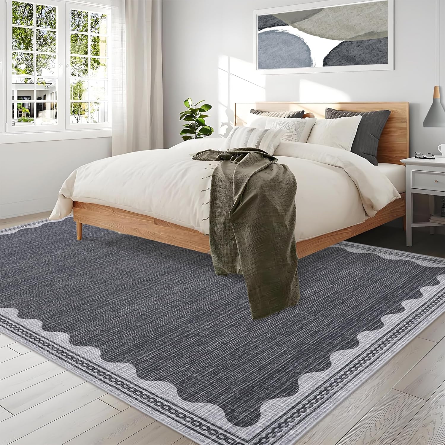 - 【Timeless Unique Scalloped Design】It is a gorgeous washable and foldable rug featuring a minimal neutral cream tone with a scalloped edge design. A timeless, modern, and unique design to add to any space.Due to the nature of printing, the 8x10 rugs design may vary slightly from the product photos, making each scalloped rug unique.