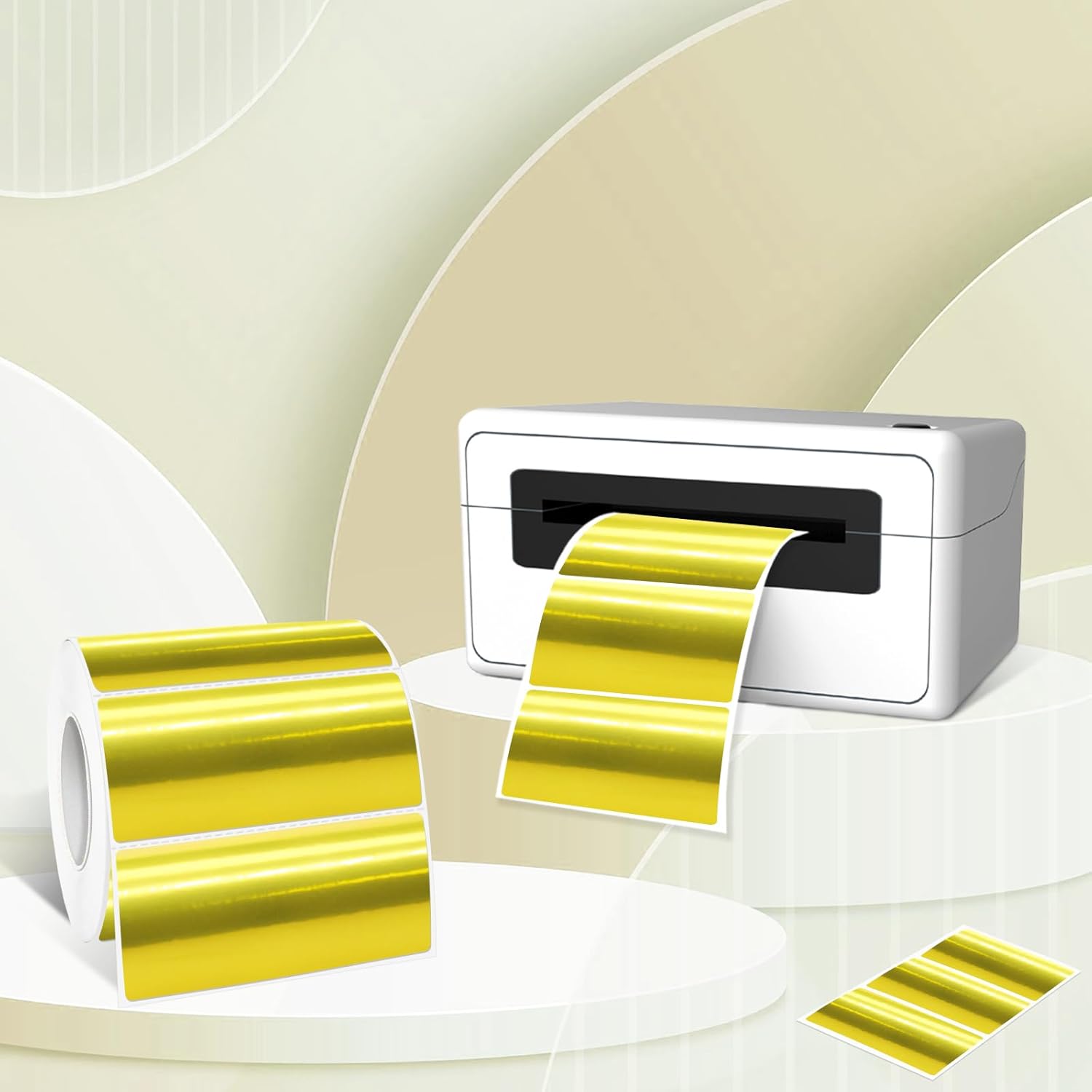 1" x 2" Gold Thermal Label Stickers,Waterproof Thermal Printer Sticker Labels for Gift Wrapping, Self-Adhesive Name Price Tag DIY Custom Logo Design (500 pcs,Gold)