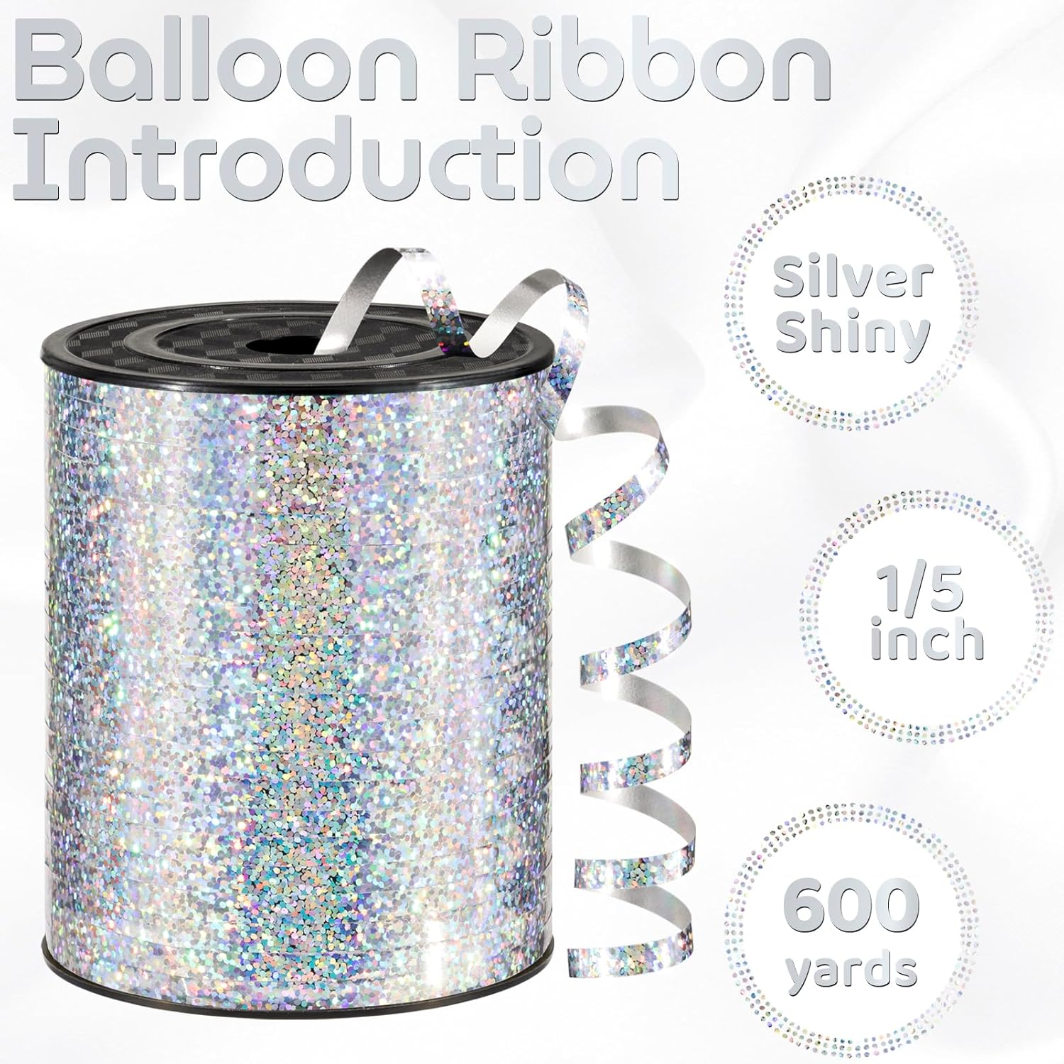 600 Yards Silver Curling Ribbon 1/5 Inch Shiny Metallic Silver Ribbon Balloon String Thin Balloon String for Gift Wrapping, Art Crafts, Wedding Party, Florists, Christmas