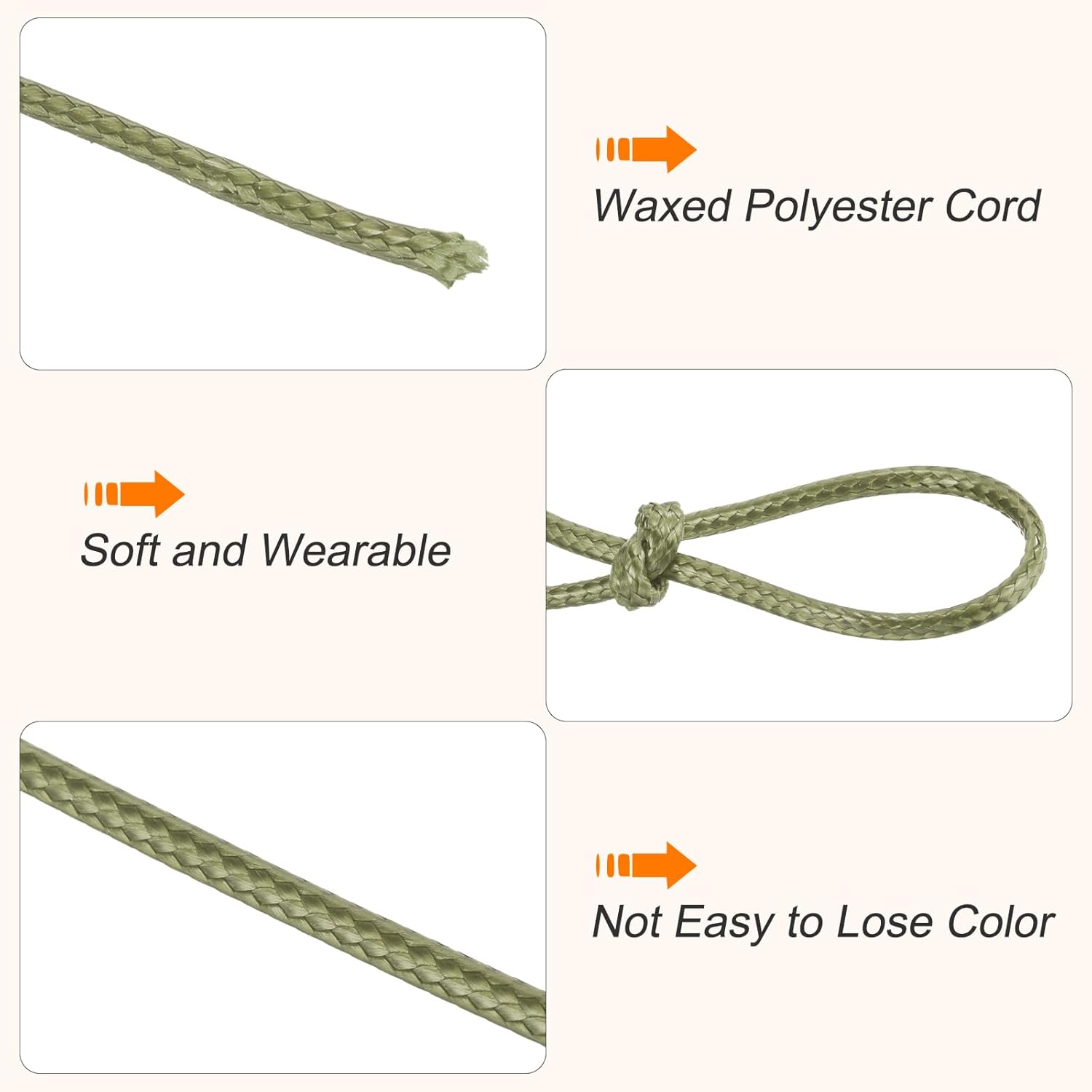 MECCANIXITY Waxed Cord 2.5mm Waxed Polyester Cord 87 Yard Wax String for Bracelet Making, Necklaces, Beading, Jewelry Making and DIY Crafts(Army Green)