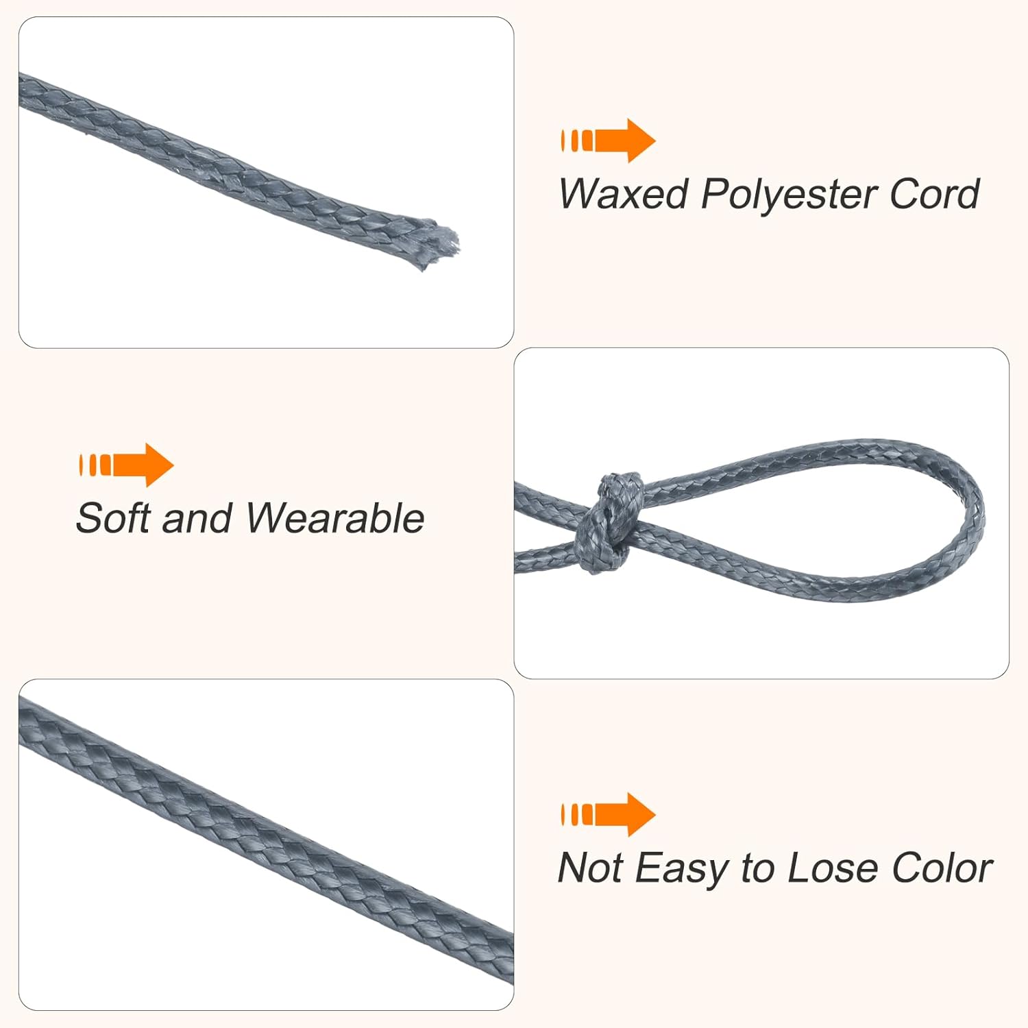 MECCANIXITY Waxed Cord 2.5mm Waxed Polyester Cord 87 Yard Wax String for Bracelet Making, Necklaces, Beading, Jewelry Making and DIY Crafts(Dark Gray)