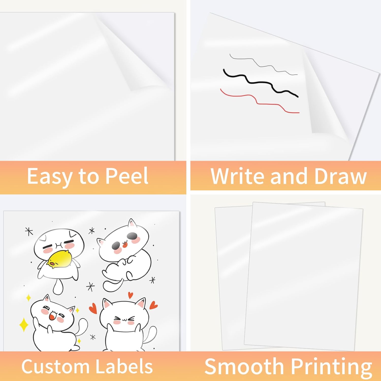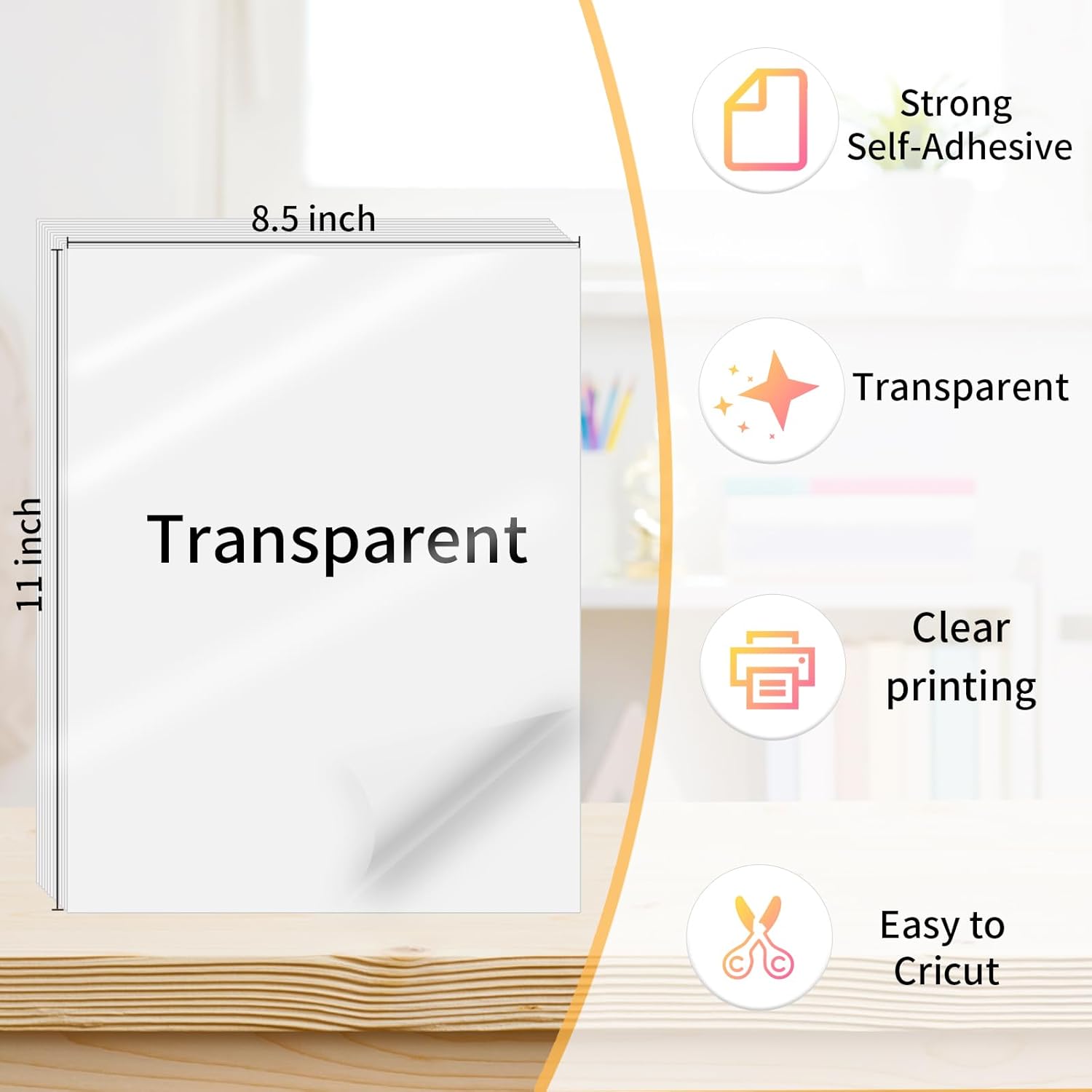 Clear Sticker Paper for Inkjet Printer, Clear Printable Stickers Paper, 20 Sheets Printable Transparent Sticker Paper, Laser/Inkjet Printing- Letter Size (8.5" x 11")