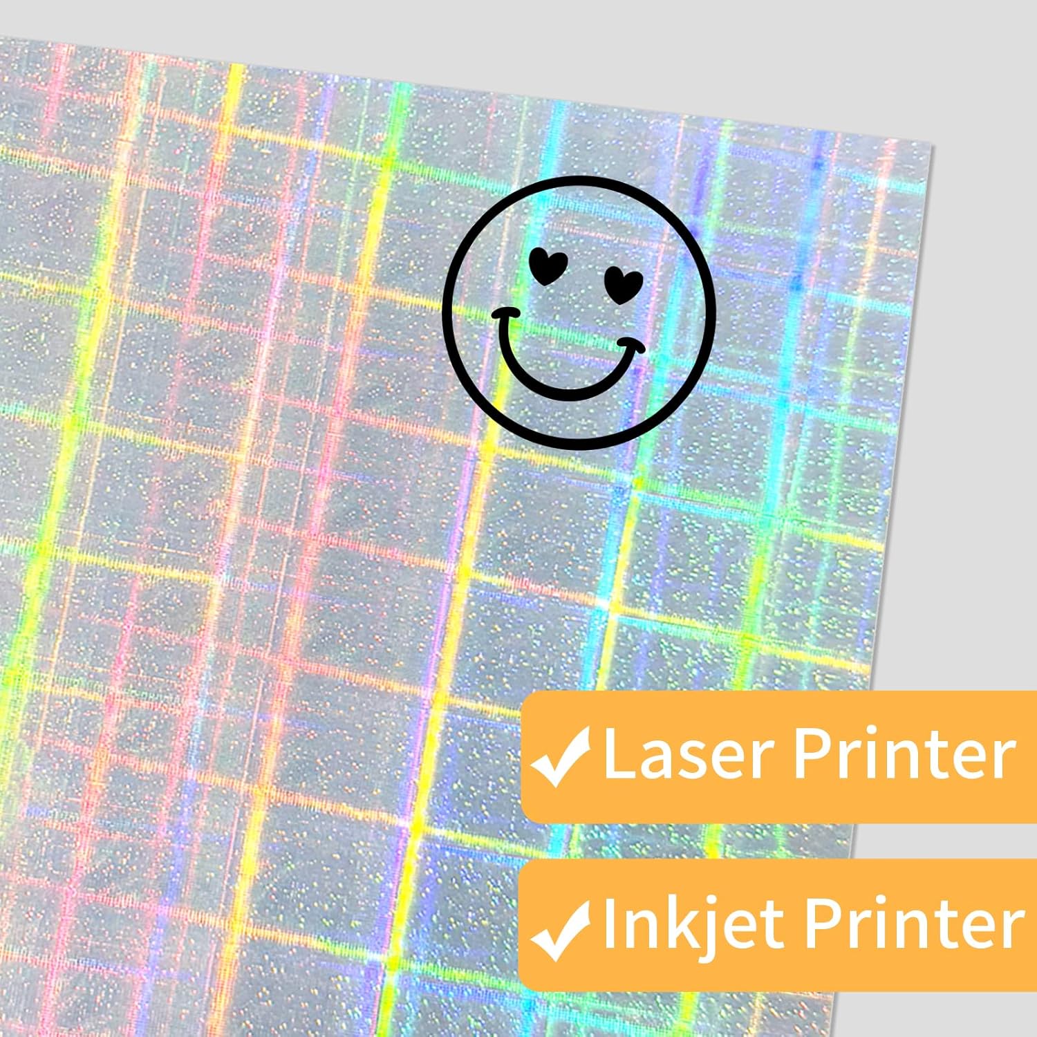 Printable Sticker Paper, 20 Sheets Printable Holographic Sticker Paper, Laser/Inkjet Printing- Holographic, Letter Size (8.5" x 11")