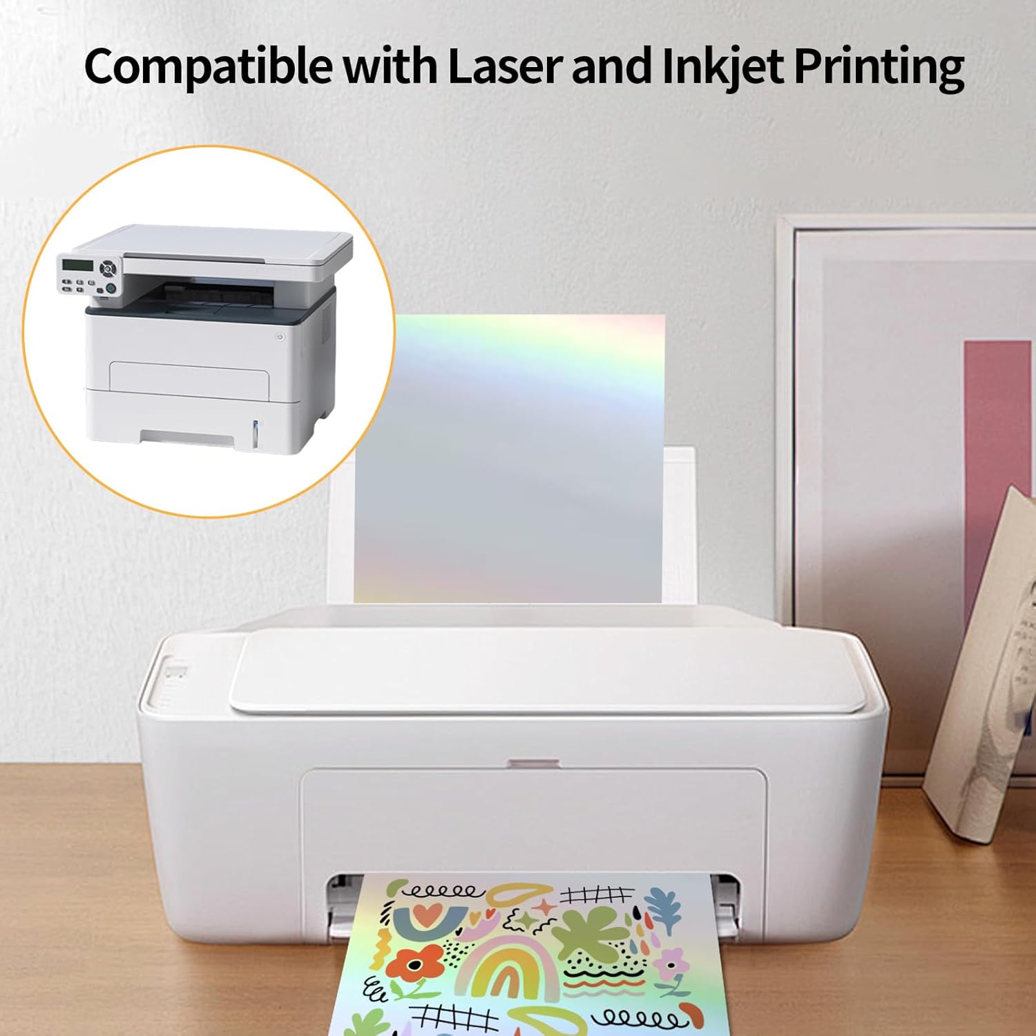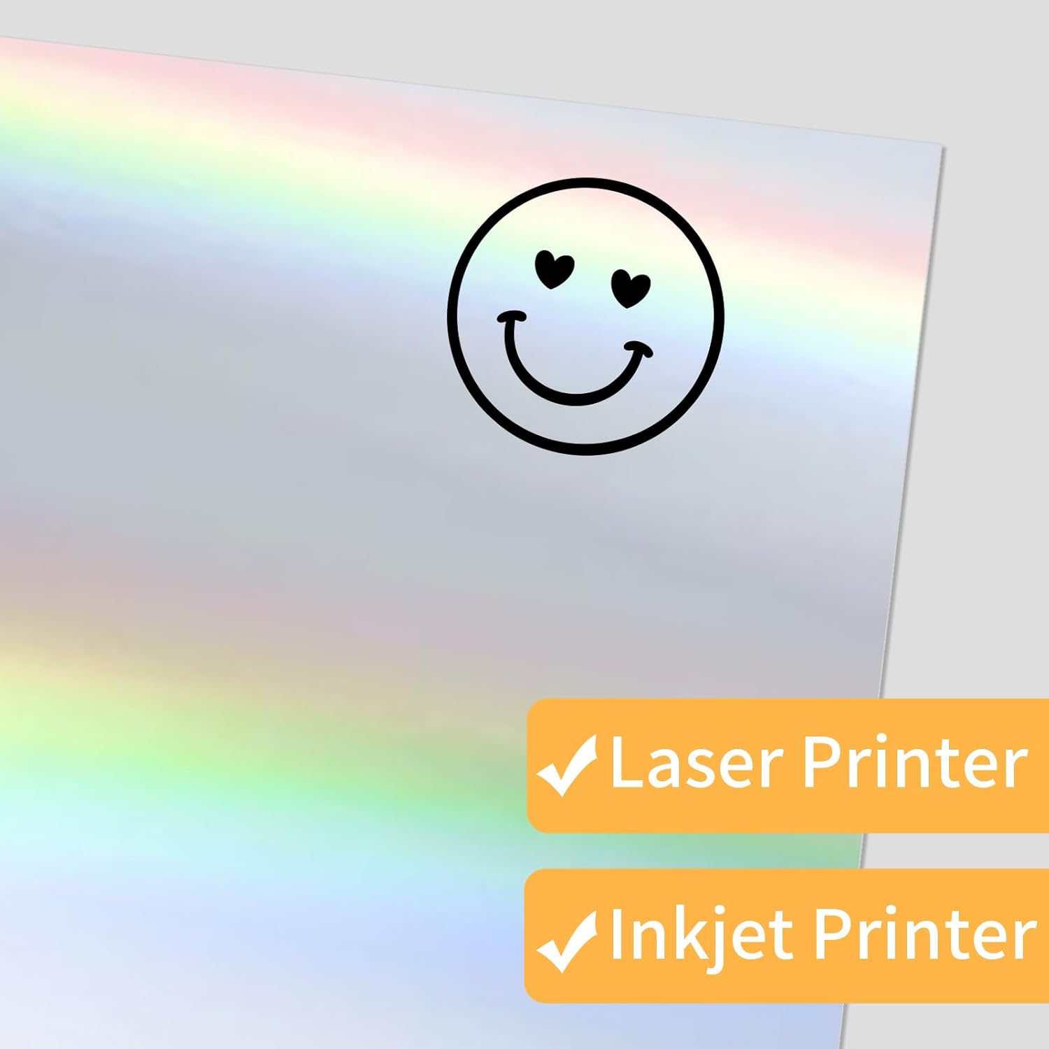 Printable Sticker Paper, 20 Sheets Printable Holographic Sticker Paper, Laser/Inkjet Printing- Holographic, Letter Size (8.5" x 11")