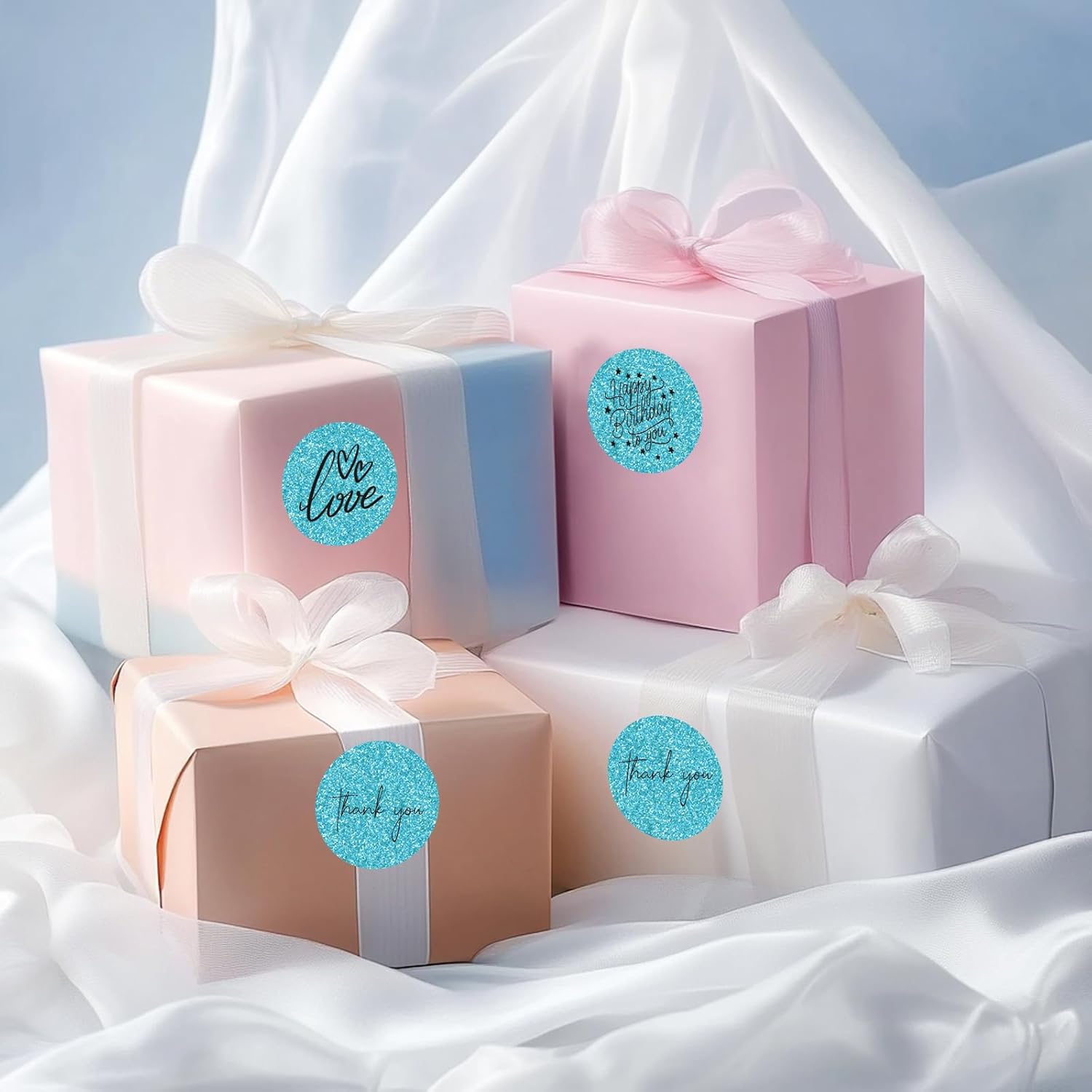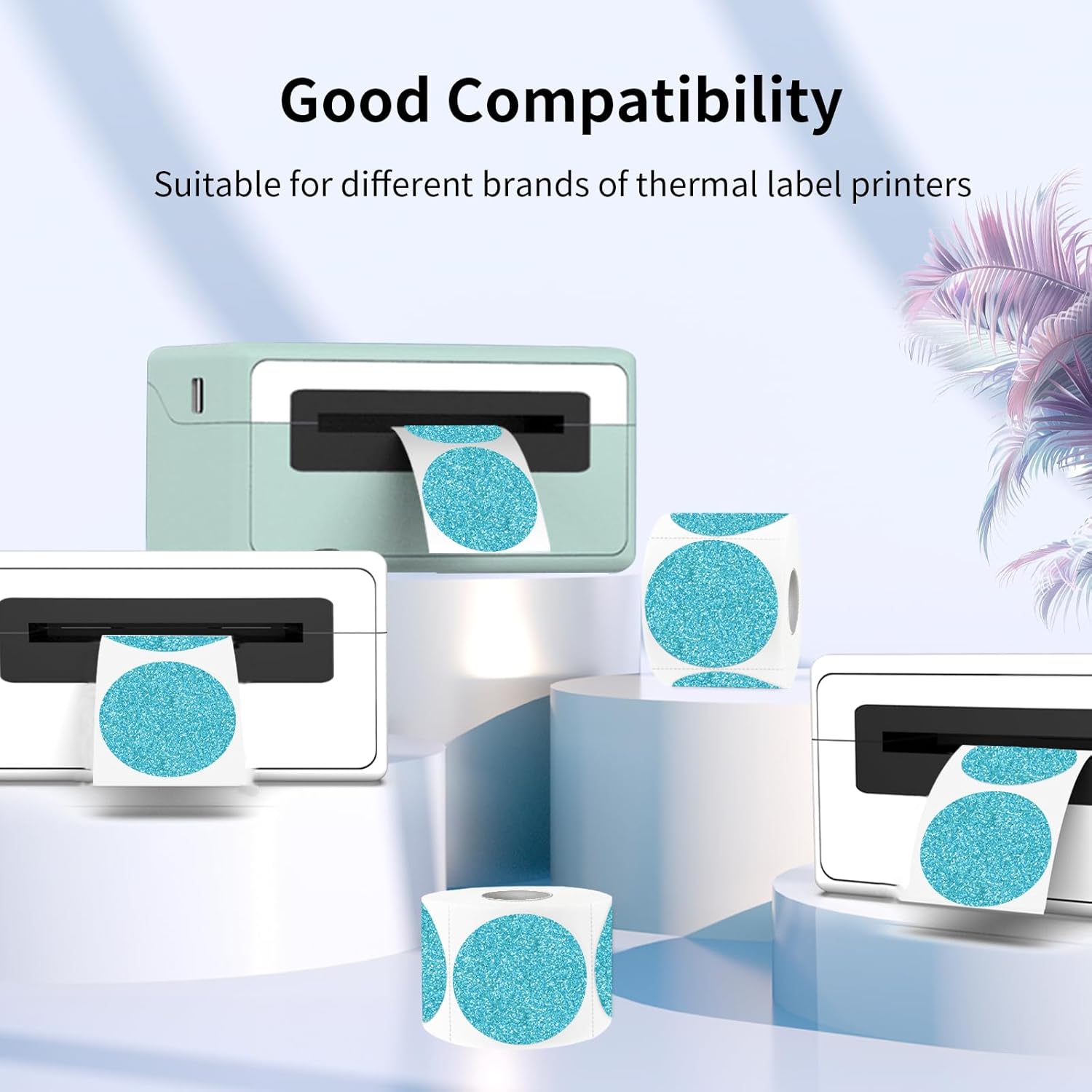 - Package: Circle Holographic Glitter Blue Thermal Sticker Labels 1.5", 350 Labels/Roll. It’s printable with a thermal printer, No ink toner or ribbons are needed