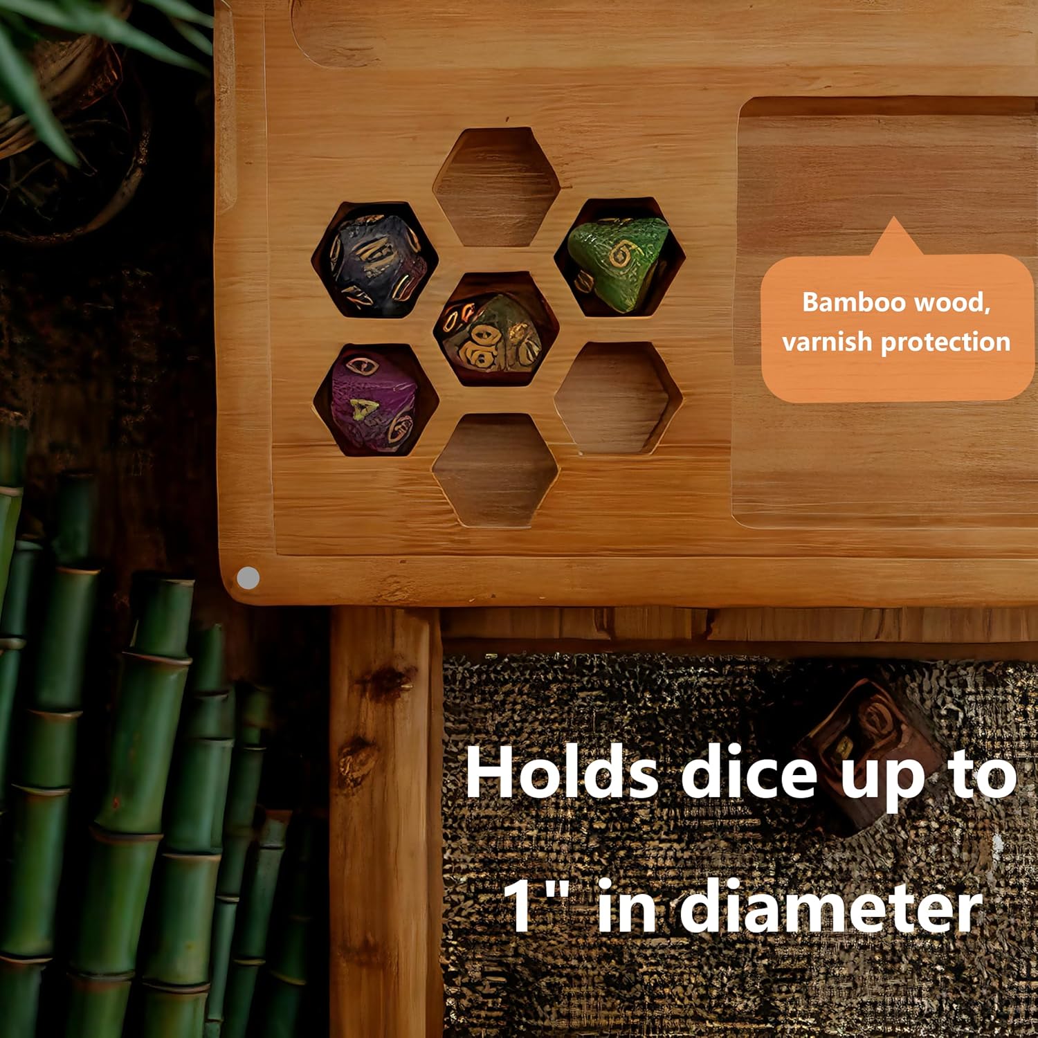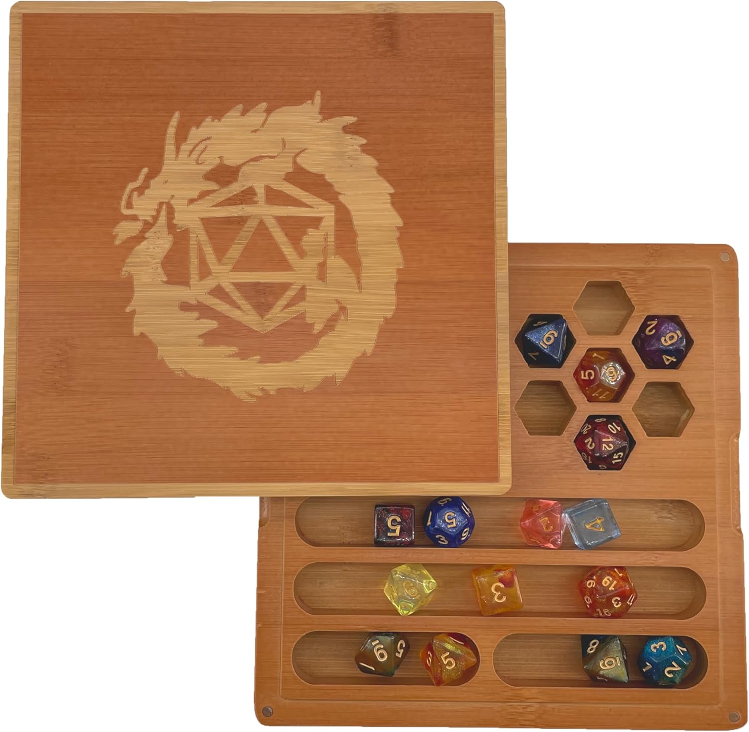 - 【Bamboo Dice Box】This D&D dice box is made of 100% natural bamboo wood. The size is inches 7.5 x 7.5 inch and weighs only 0.95 pounds