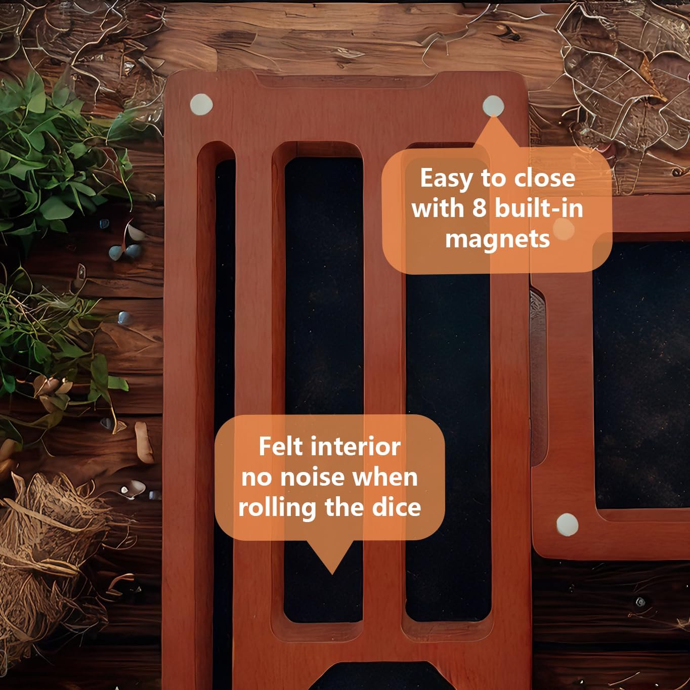 - 【Felt Interior】Our Dice Organizer feature a luxurious felt interior with an exceptionally fine texture, which can effectively protect the wood, and there will be no noise when rotating the dice,allowing you to better enjoy the fun of the game!