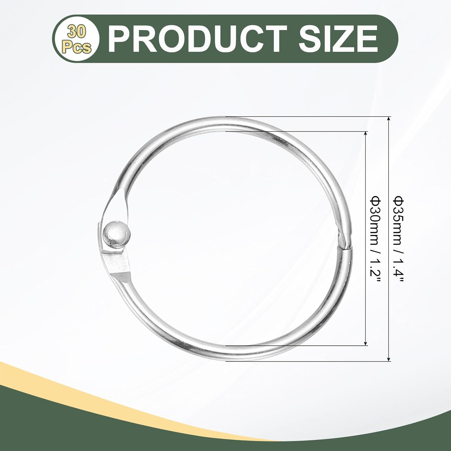 - Color: Silver Tone; Material: Steel; Size: 1.2" x 1.4"/30mm x 35mm(ID*OD); Packing List: 30 x Rings for Paper