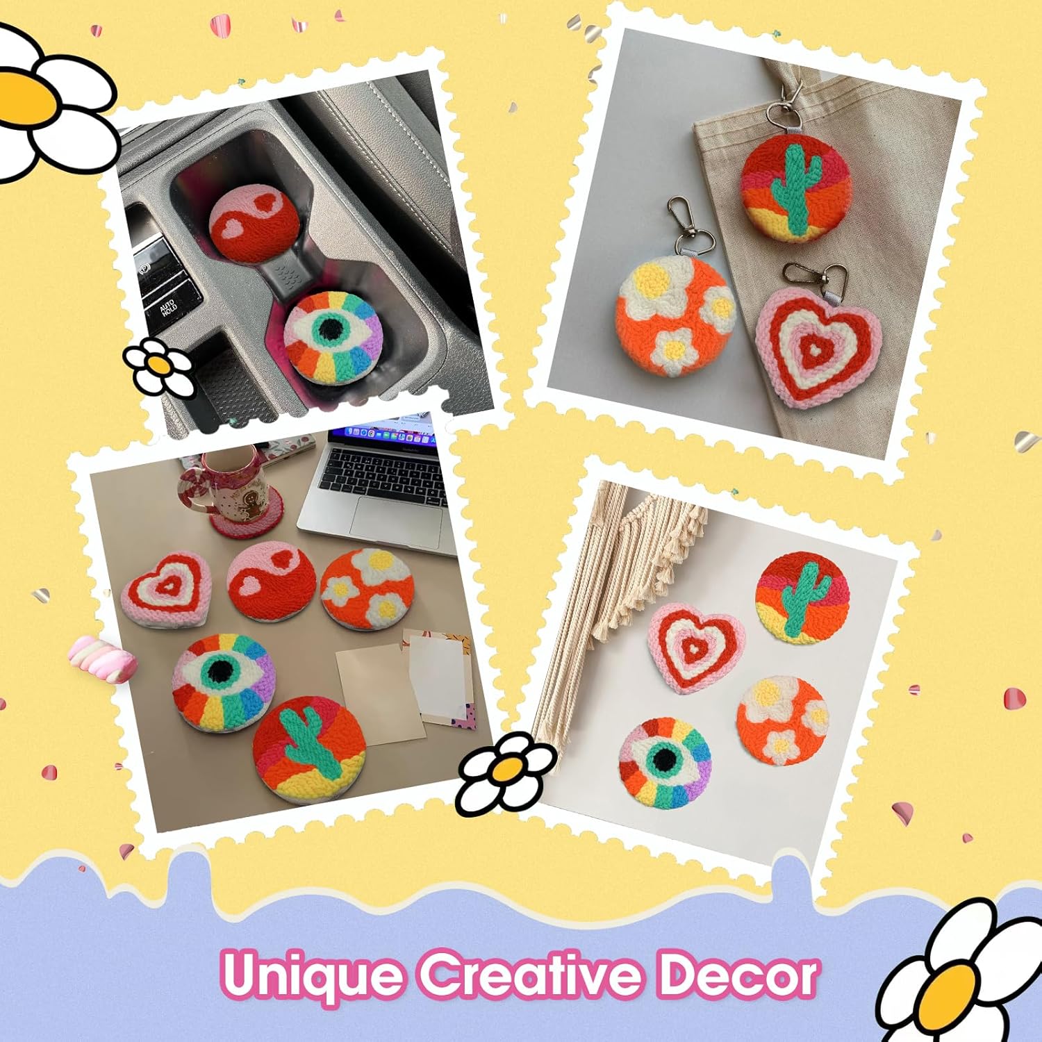 - Perfect for Home Decor: The Blessings Energy Punch Needle Kit features six symbolic and stylish patterns, blending art, meaning, and function. Use them as practical coasters or unique wall decor to bring warmth and personality to any space. Infused with themes of protection, balance, and joy, these handcrafted pieces add a touch of creativity and positive energy to your home, office, or studio.
