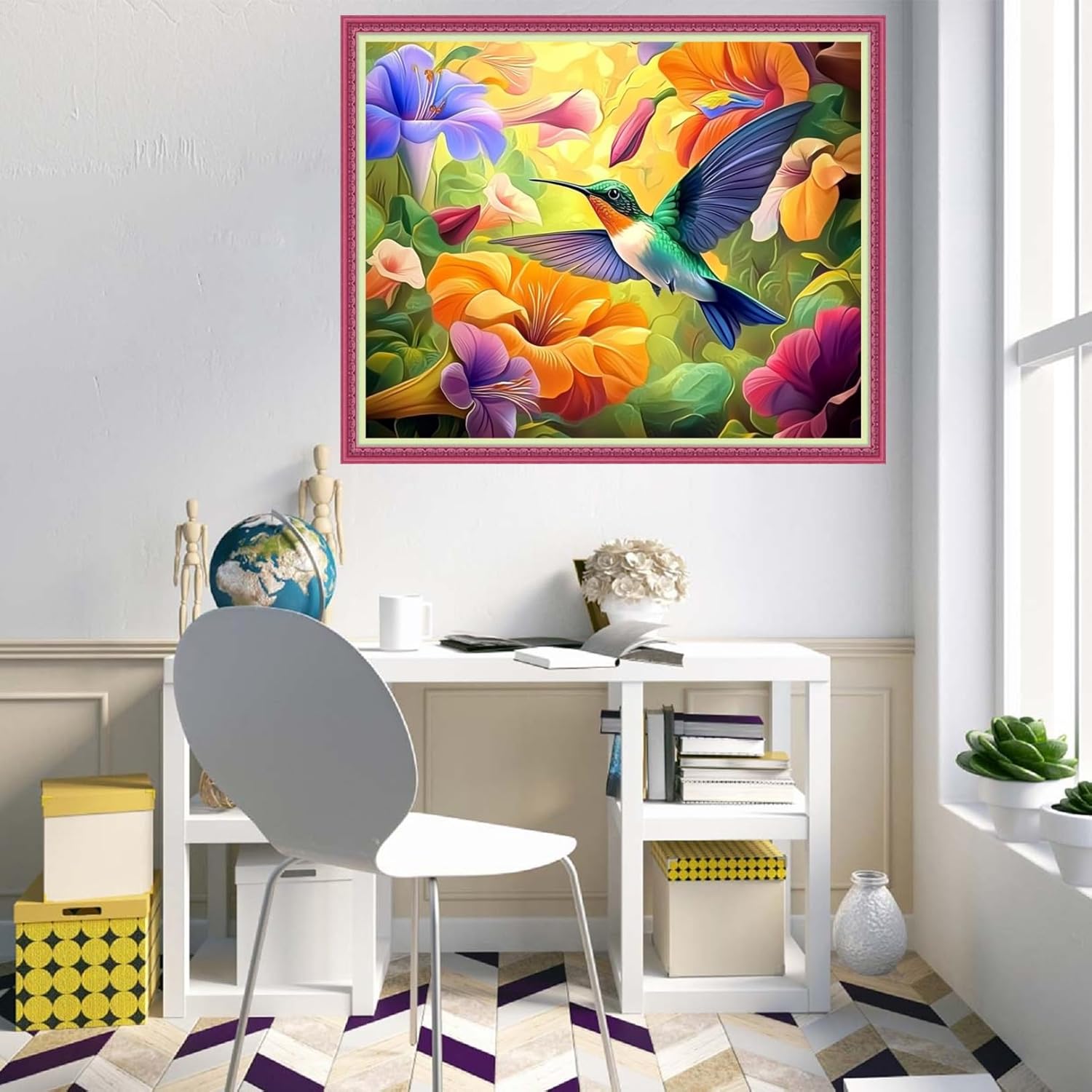 Disnesart Cross Stitch Stamped Full Embroidery Kits DIY 11CT Cotton Thread Printed DIY Needlepoint Kits Craft Needlework Set Cross-Stitch Stamped Sets-Colorful Flower Hummingbird 16x20 inch