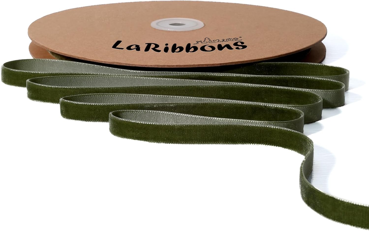 LaRibbons Thin Velvet Ribbon 3/8 Inch x 25 Yards, Moss Green Velvet Ribbon for Christmas Tree, Gift Wrapping, Wreath Bow, Outdoor Decoration