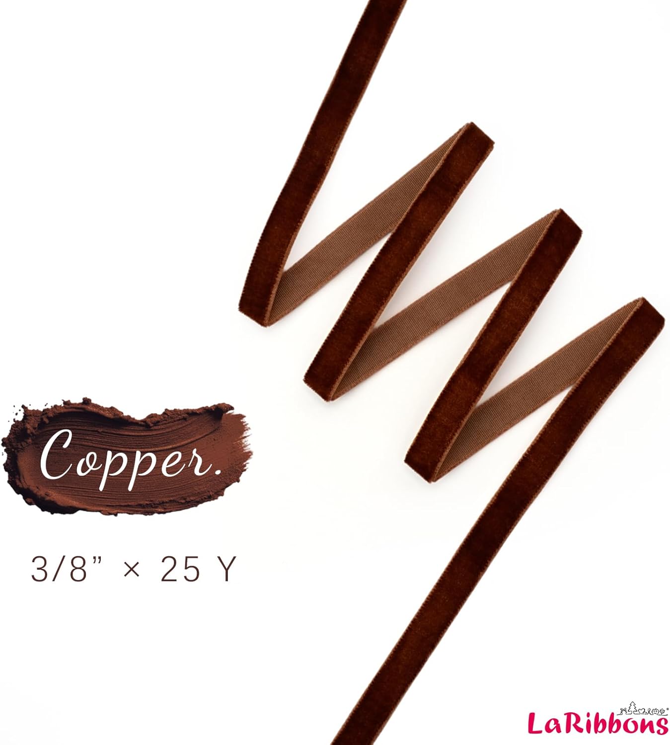 LaRibbons Thin Velvet Ribbon 3/8 Inch x 25 Yards, Copper Velvet Ribbon for Christmas Tree, Gift Wrapping, Wreath Bow, Outdoor Decoration