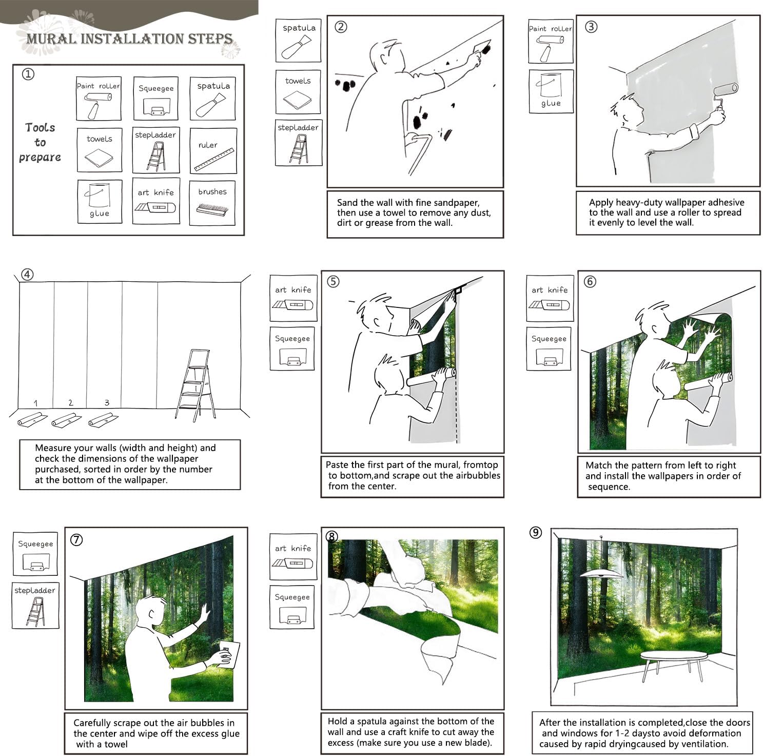 - Tips: Mural can not be peeled and pasted, you need to buy a heavy duty wallpaper glue