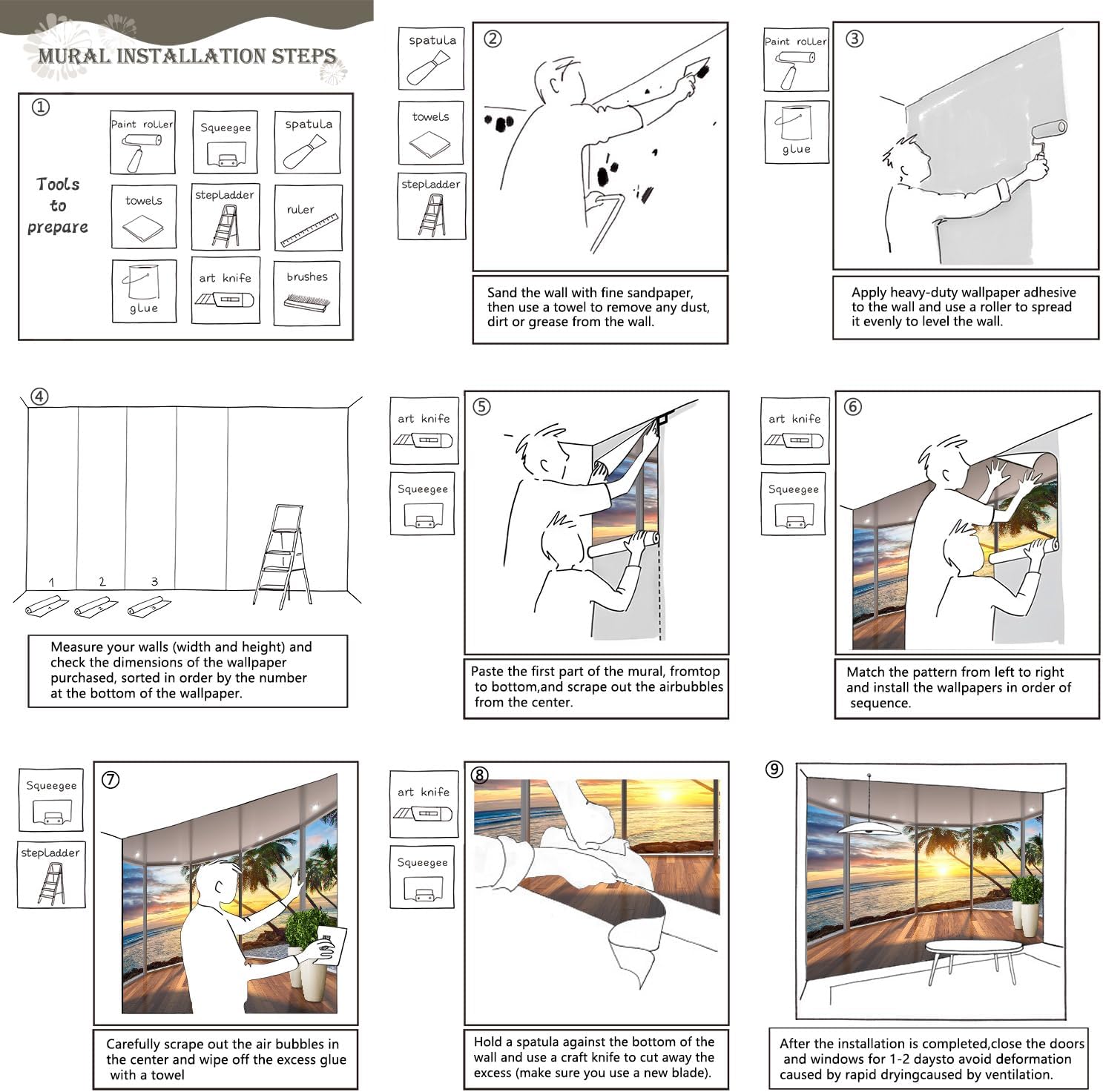 - Tips: Mural can not be peeled and pasted, you need to buy a heavy duty wallpaper glue