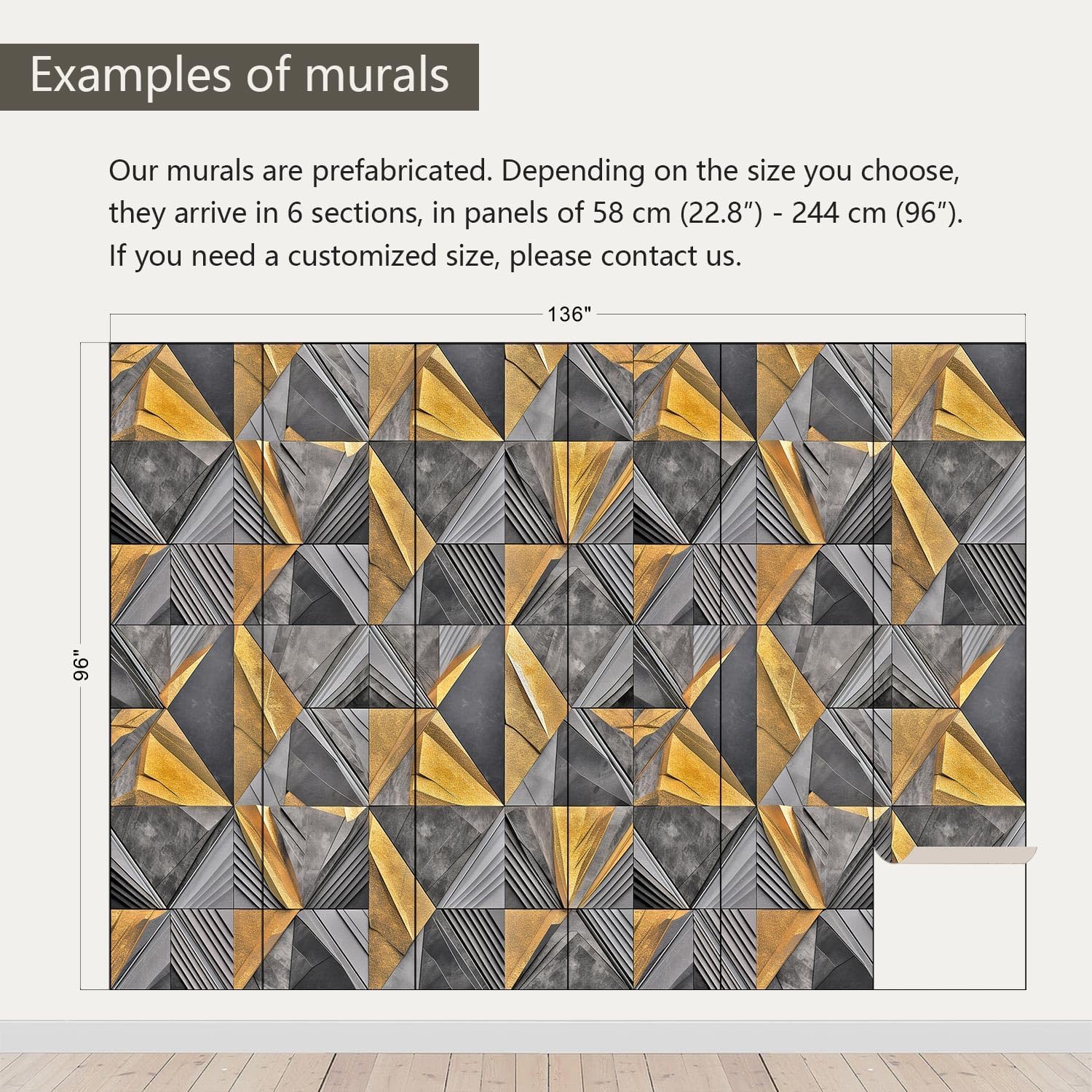 AFZEVEB-3D Geometric Wall Mural Gray and Gold Wallpaper for Bedroom 136"x96"(Not Peel and Stick)