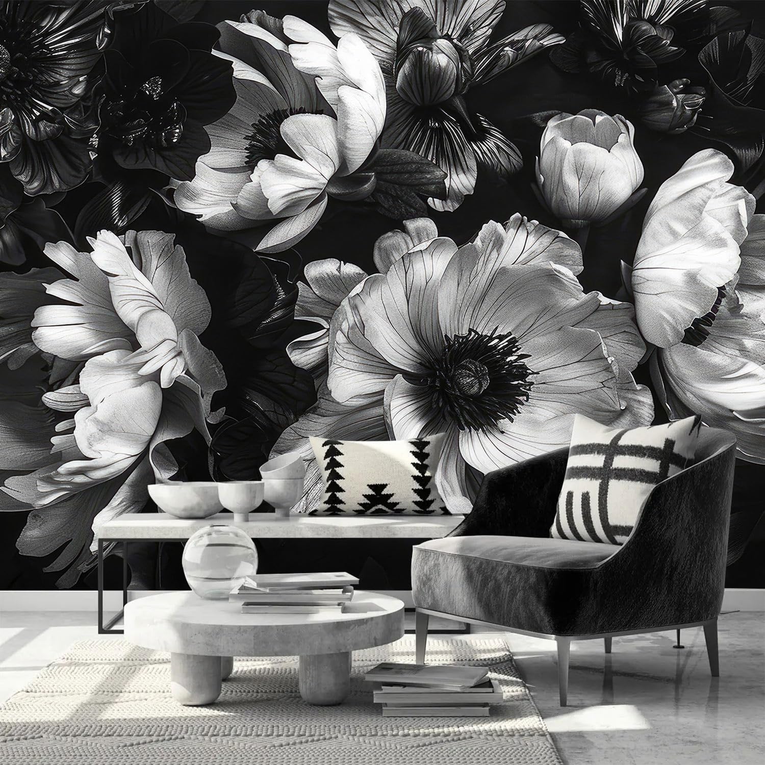 AFZEVEB-Black Peony Floral Wallpaper Vintage Large Flower Wall murals for Bedroom 159"x107"(Not Peel and Stick)
