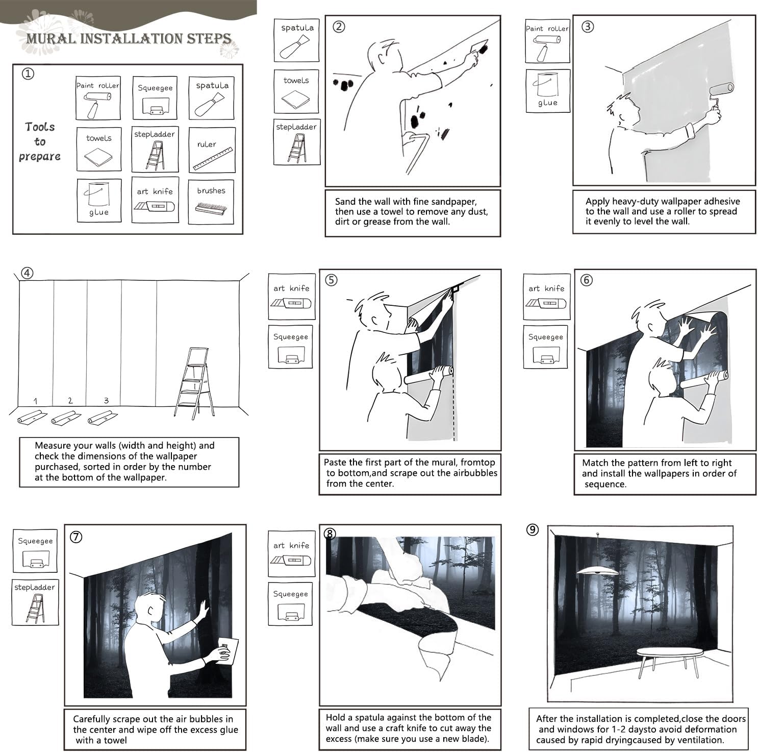 - Tips: Mural can not be peeled and pasted, you need to buy a heavy duty wallpaper glue
