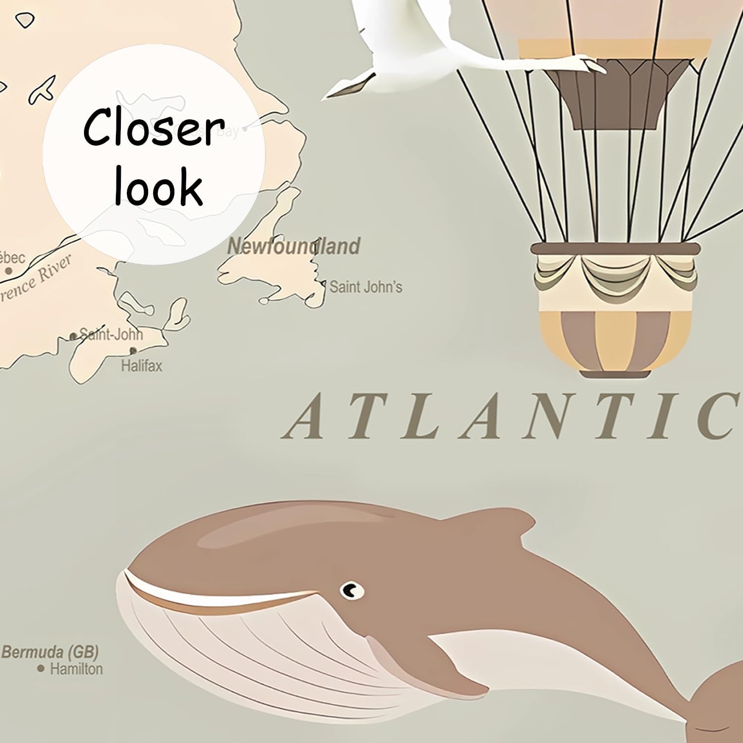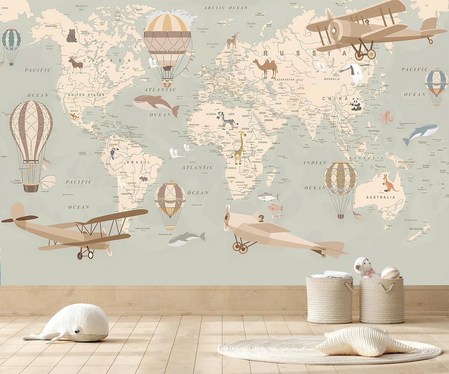 AFZEVEB-Vintage Animal Wallpaper Cartoon Aircraft Map Wall murals for Kids Room 114"x74"(Not Peel and Stick)