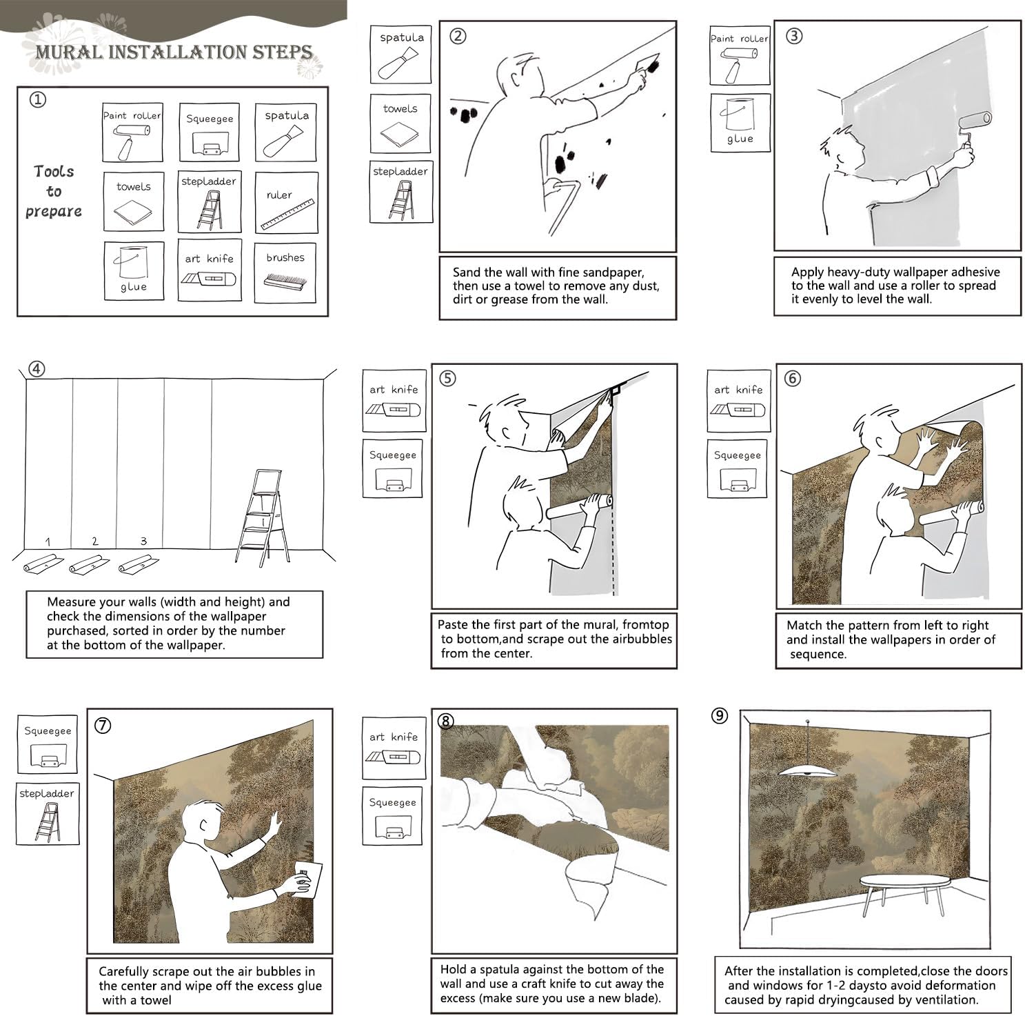 - Tips: Mural can not be peeled and pasted, you need to buy a heavy duty wallpaper glue