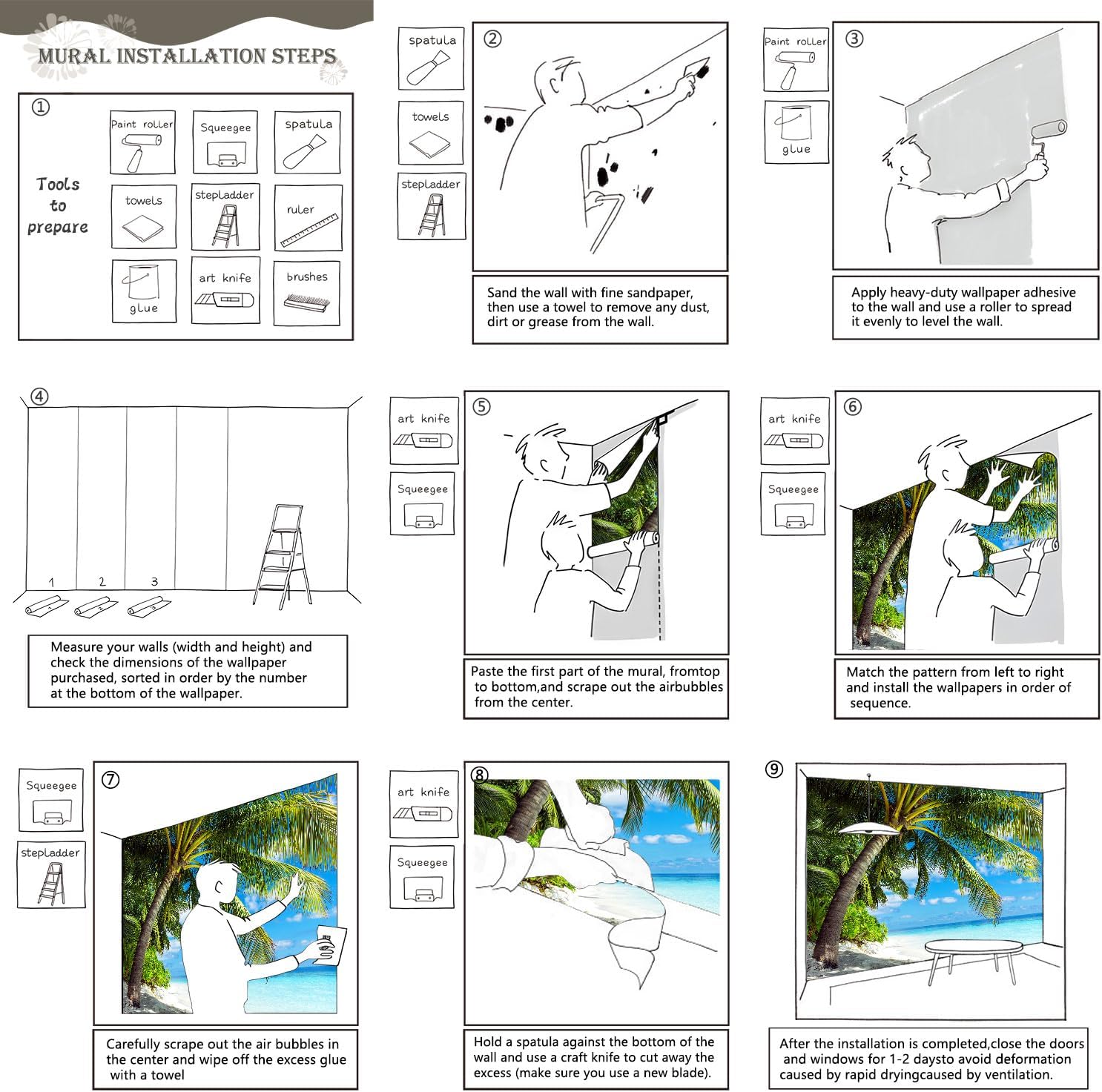 - Tips: Mural can not be peeled and pasted, you need to buy a heavy duty wallpaper glue
