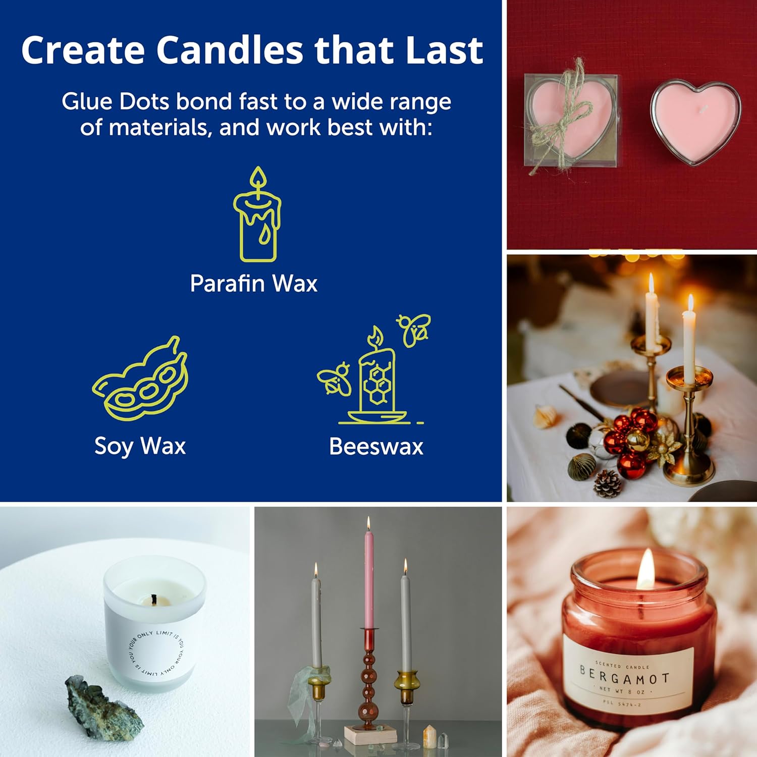 Glue Dots, Candle Dots, Double-Sided, Permanent, 1/2", 3-Pack, 900 Total Dots, Heat-Resistant Adhesive, DIY Candle-Making, Secure Candle-Wick, Liquid Hot Glue Alternative, Clear