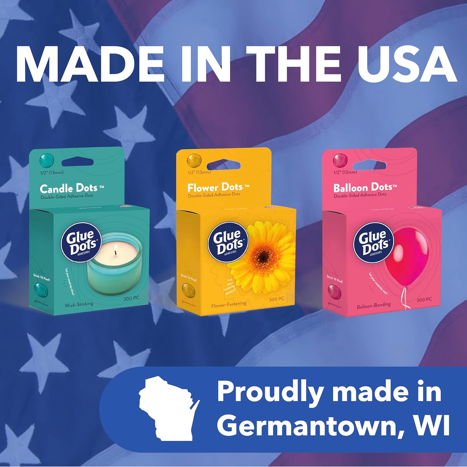 - MADE IN THE USA: All of our adhesives are created from concept to product in Germantown, Wisconsin. Glue Dots is proud to design and manufacture all of our adhesives in the USA!