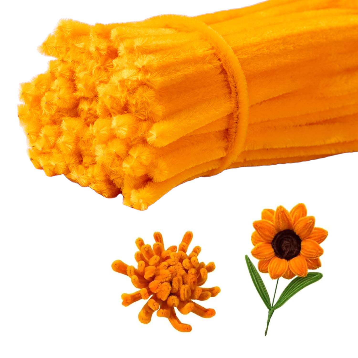 100 Pieces Pipe Cleaners Chenille Stem, Pumpkins Color Pipe Cleaners Set for Pipe Cleaners DIY Arts Crafts Decorations, Chenille Stems Pipe Cleaners (Gold)
