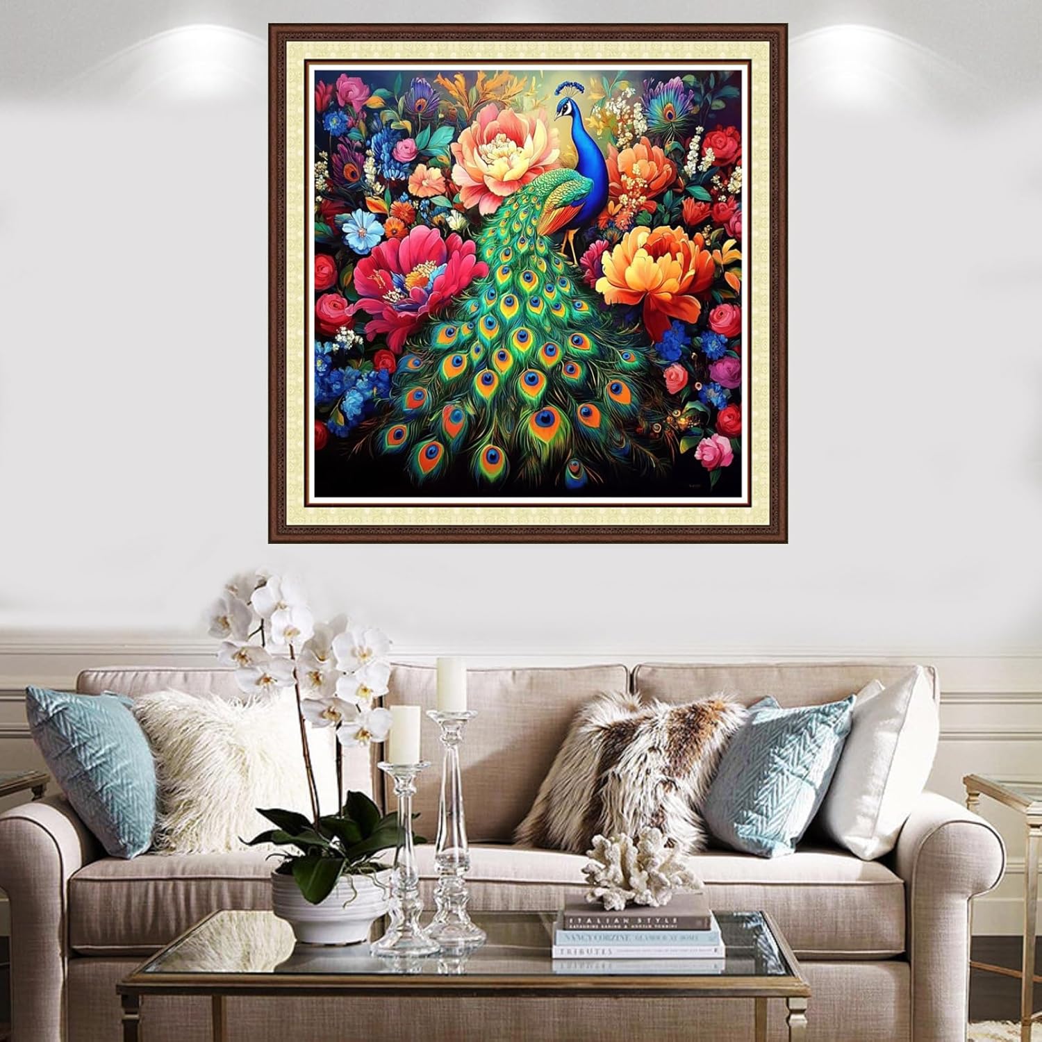 Findvoor Counted Cross Stitch Kits for Adults Full Range of Cross Stitching Embroidery Unprinted Pattern for Beginners, 11CT Needlepoint Kit Patterns Embroidery Kits-Colorful Peacock Flower 18x18 inch