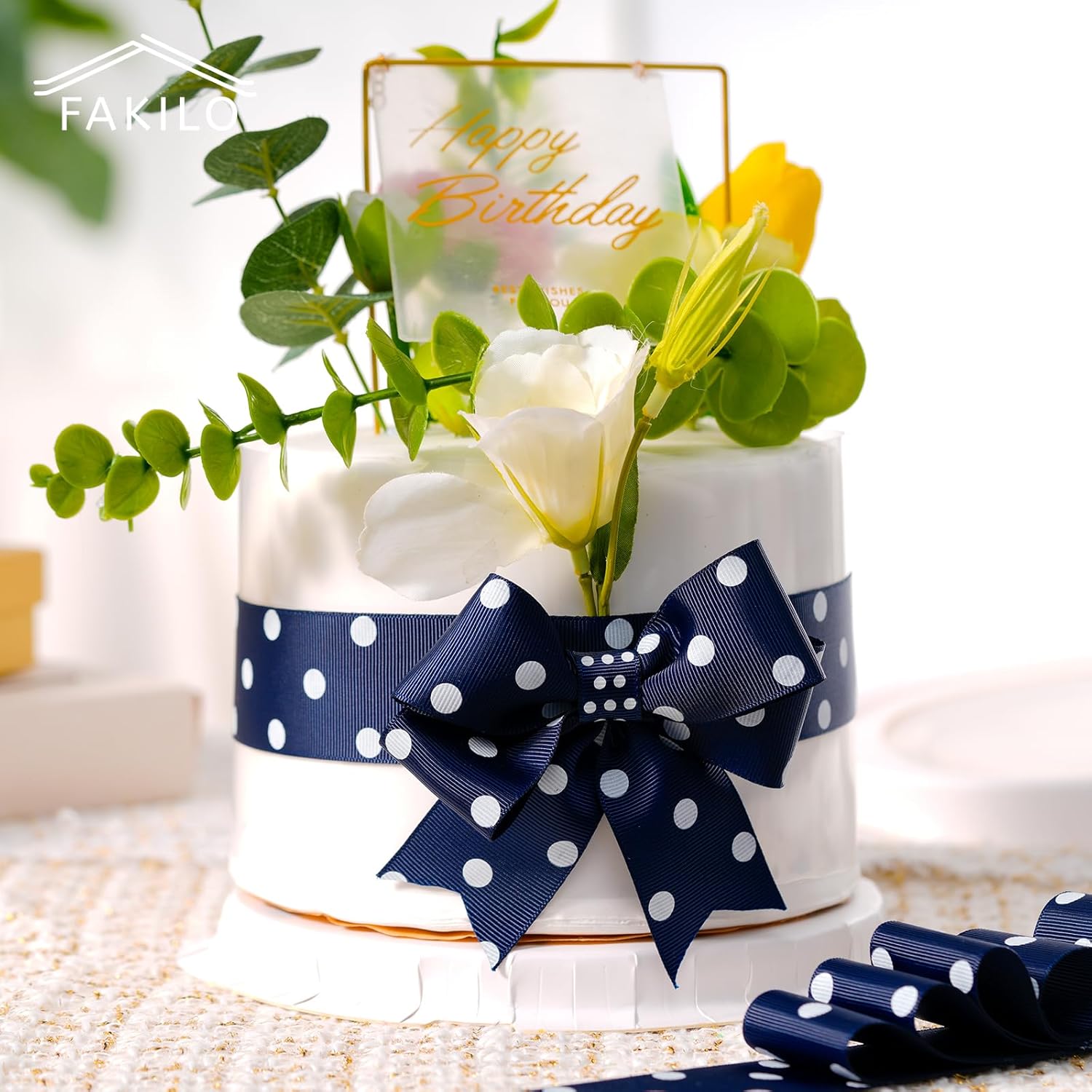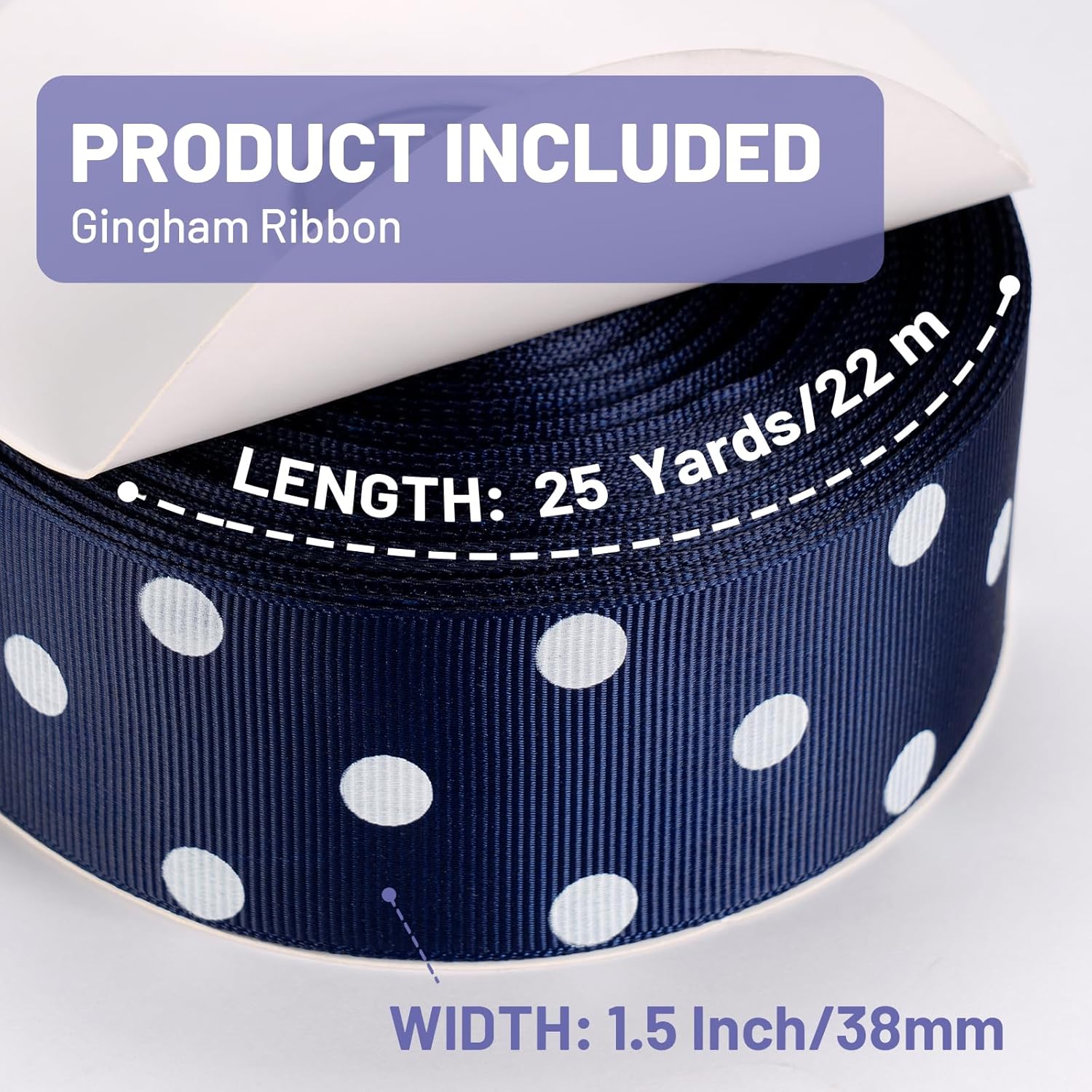 Polka Dot Grosgrain Ribbon 1.5 Inch, 25 Yards Spool Navy Blue and White Dot Craft Ribbon for Christmas Gift Wrapping DIY Crafts Hair Bows Wedding Party Decor Sewing and Home Decoration