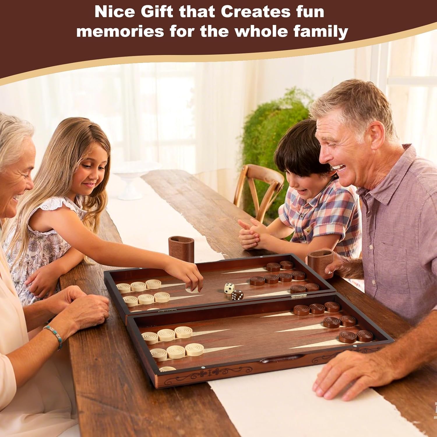 Wooden Folding Backgammon Set - Large 15.75" (40cm), Handcrafted Exquisite Design, Perfect for Adults & Kids, Ideal for Backgammon Enthusiasts
