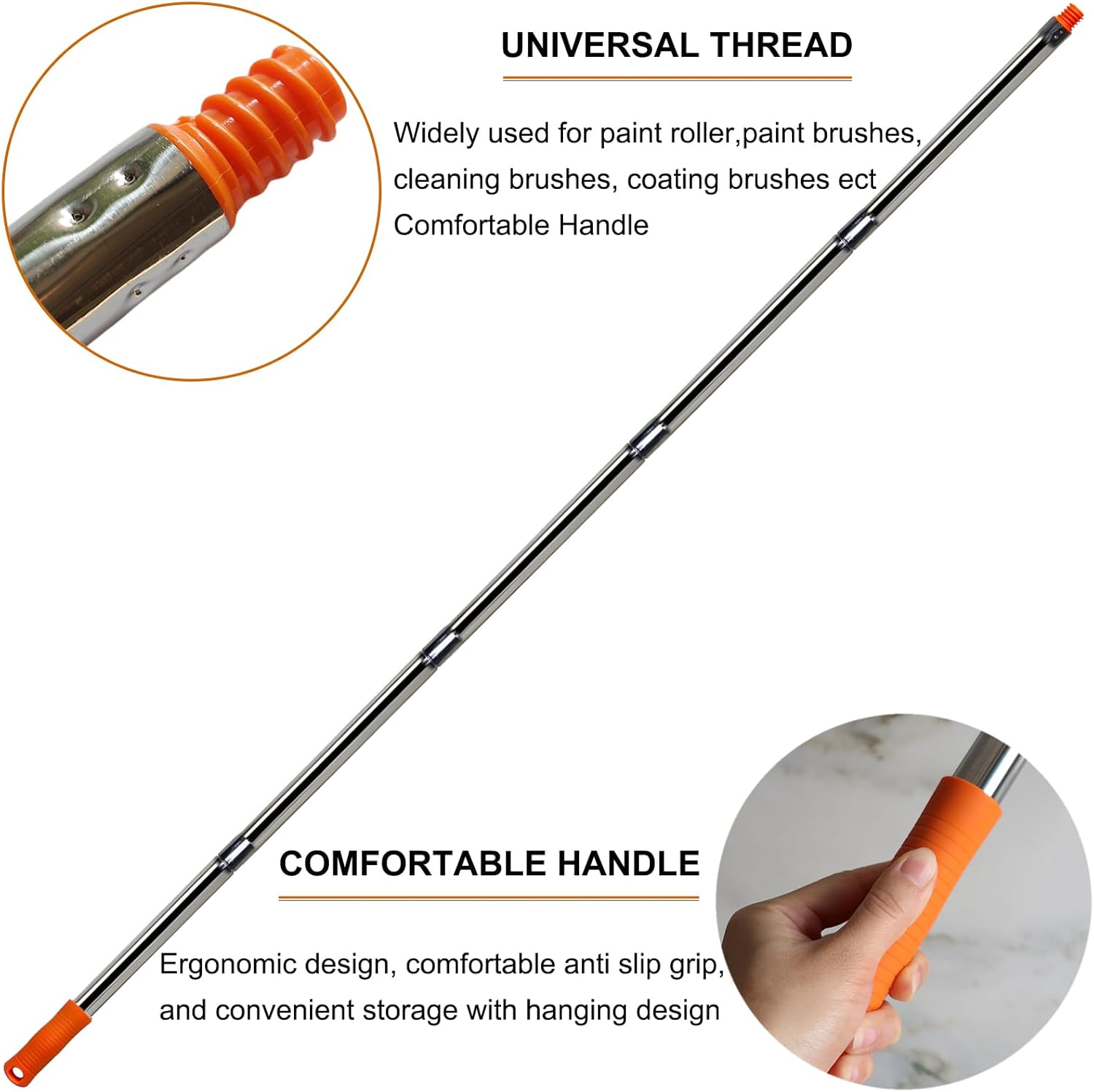 - Durable Construction: Our paint roller/Fruit Picker/Duster extension pole includes a 8-piece stainless-steel pole with threaded plastic connectors. The high-quality stainless steel ensures long-lasting use, while the plastic connectors provide a secure and stable connection.β