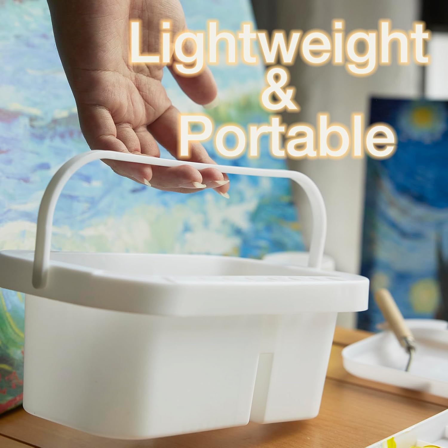 SEVENY Paint Brush Cleaner, Paint Brush Holder and Organizers with Palette for Acrylic, Watercolor, and Water-Based Paints (White)