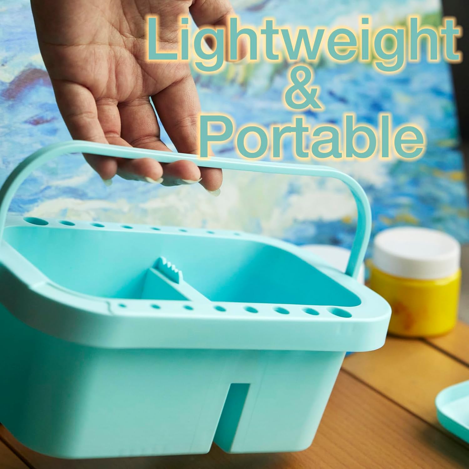 SEVENY Paint Brush Cleaner, Holder and Organizers with Palette,Trays & Rinser for Acrylic, Watercolor, and Water-Based Paints(Blue)