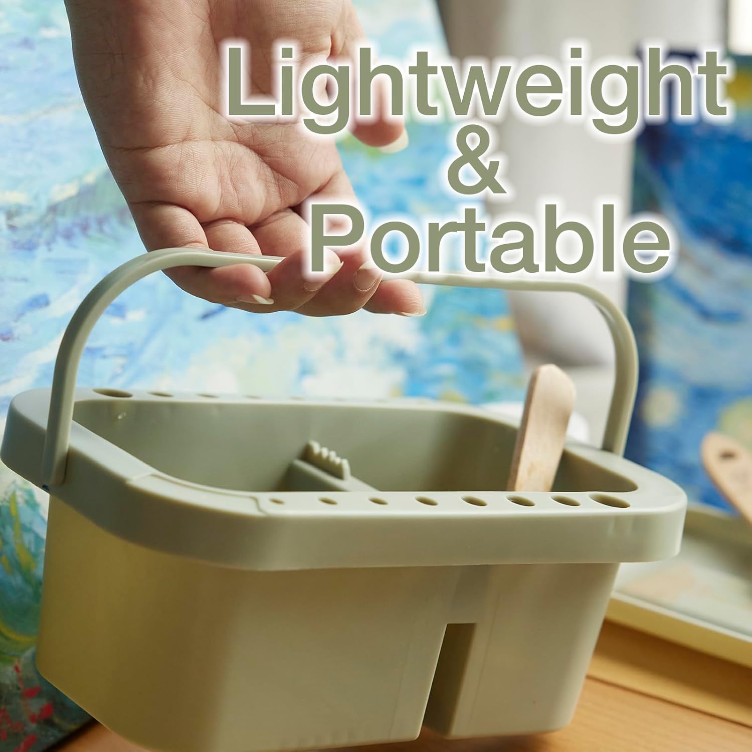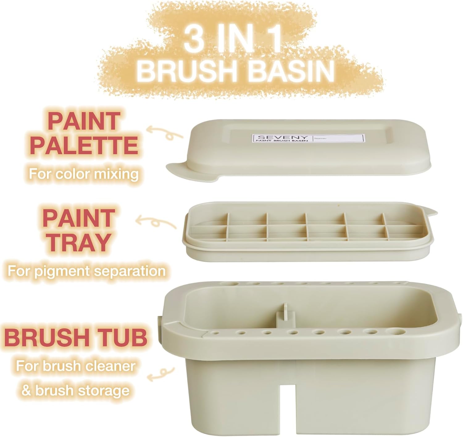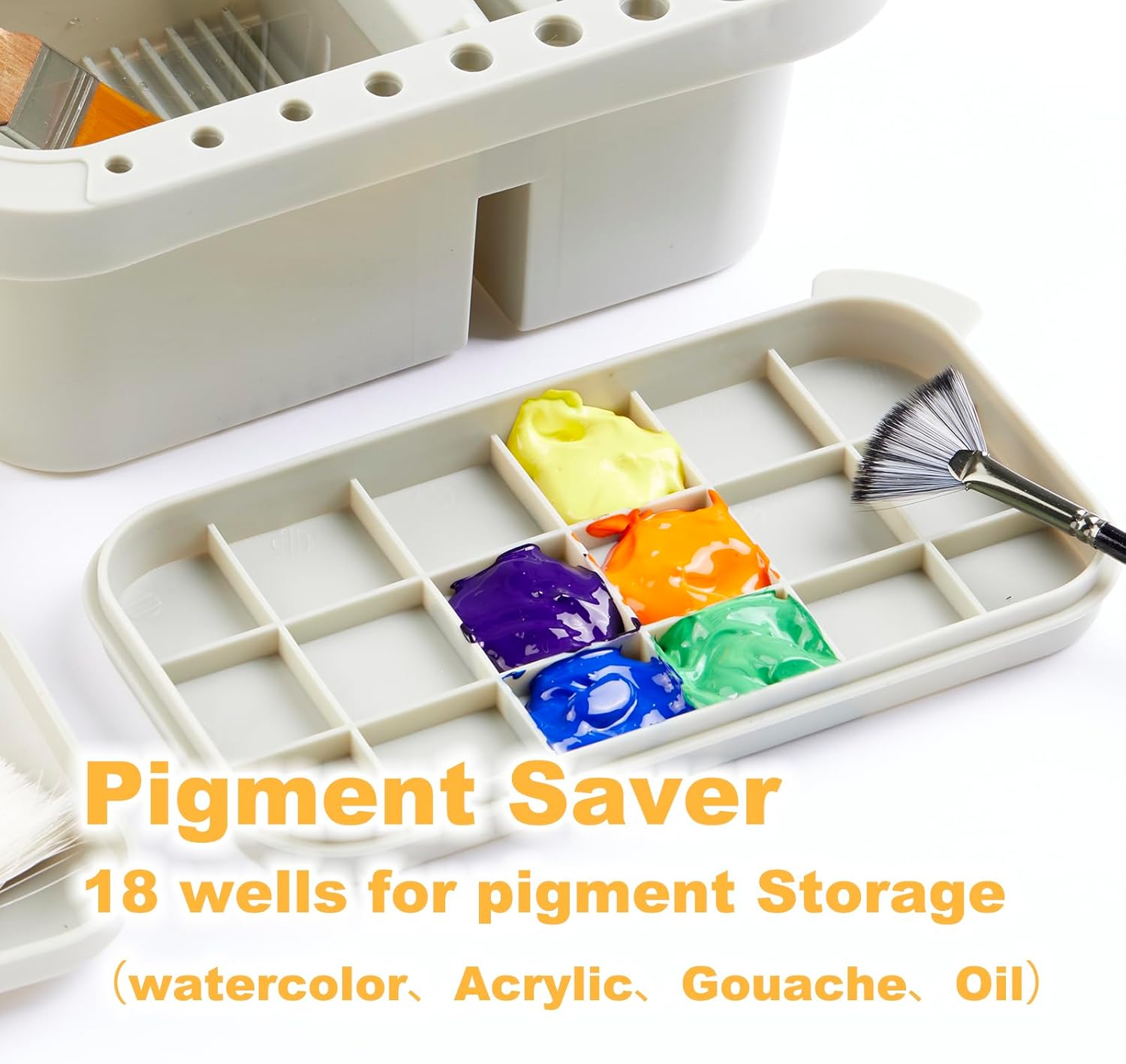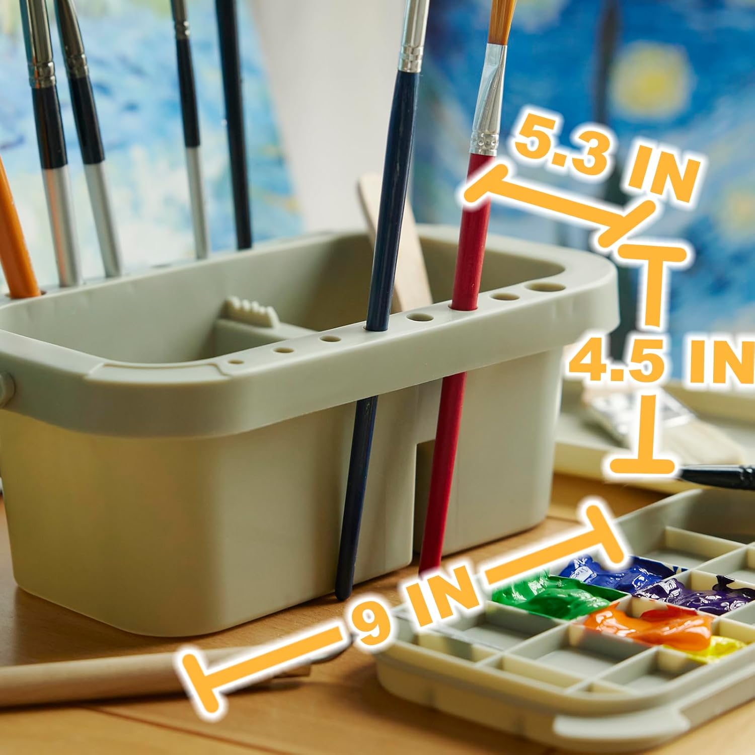 SEVENY Paint Brush Basin with Palette,Painting Art Supply Storage Organizer for Acrylic, Watercolor, and Water-Based Paints(Grey)