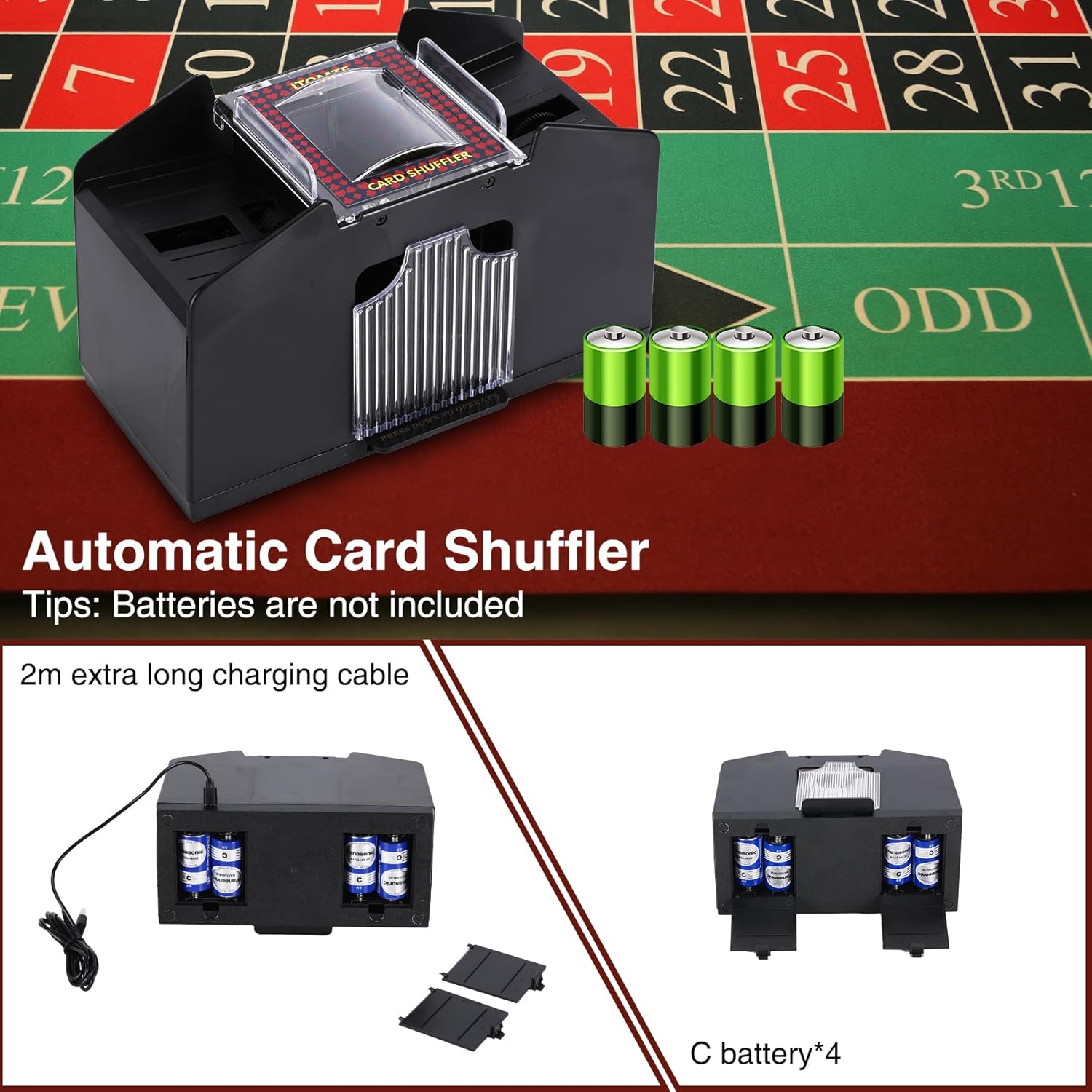- [Heavy Duty & Durable Construction] Built to last, this 4 deck electric card shuffler is crafted with high-quality materials to withstand frequent use. Whether you're hosting a casual game night or running a professional casino operation, this automatic card shuffler will consistently deliver exceptional performance.