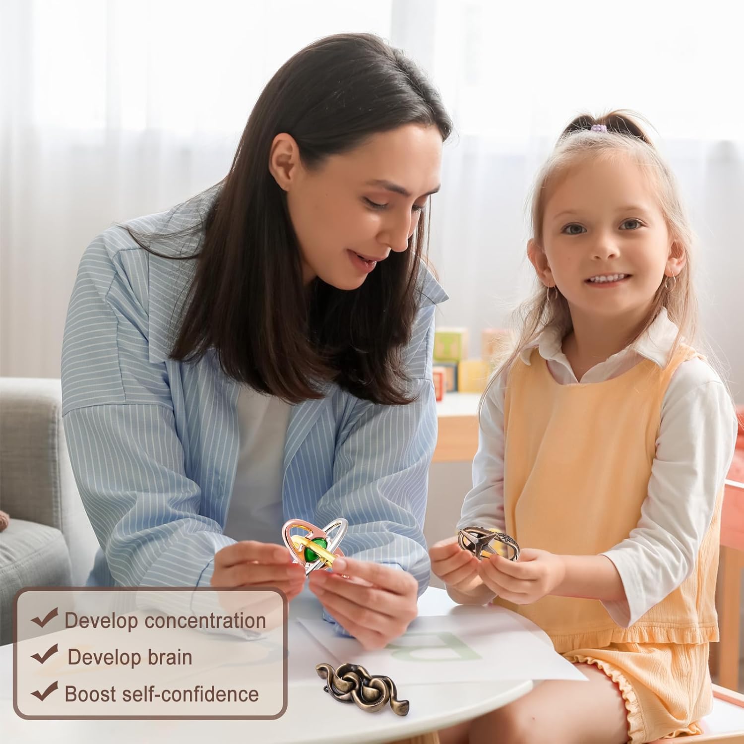 • 【BRAIN TEASER PUZZLES】These cleverly designed puzzles are perfect for all ages, promoting lateral thinking and creativity. They help seniors exercise their brains, improve concentration and problem-solving skills in children and adolescents, and support individuals with ADHD by boosting focus and confidence