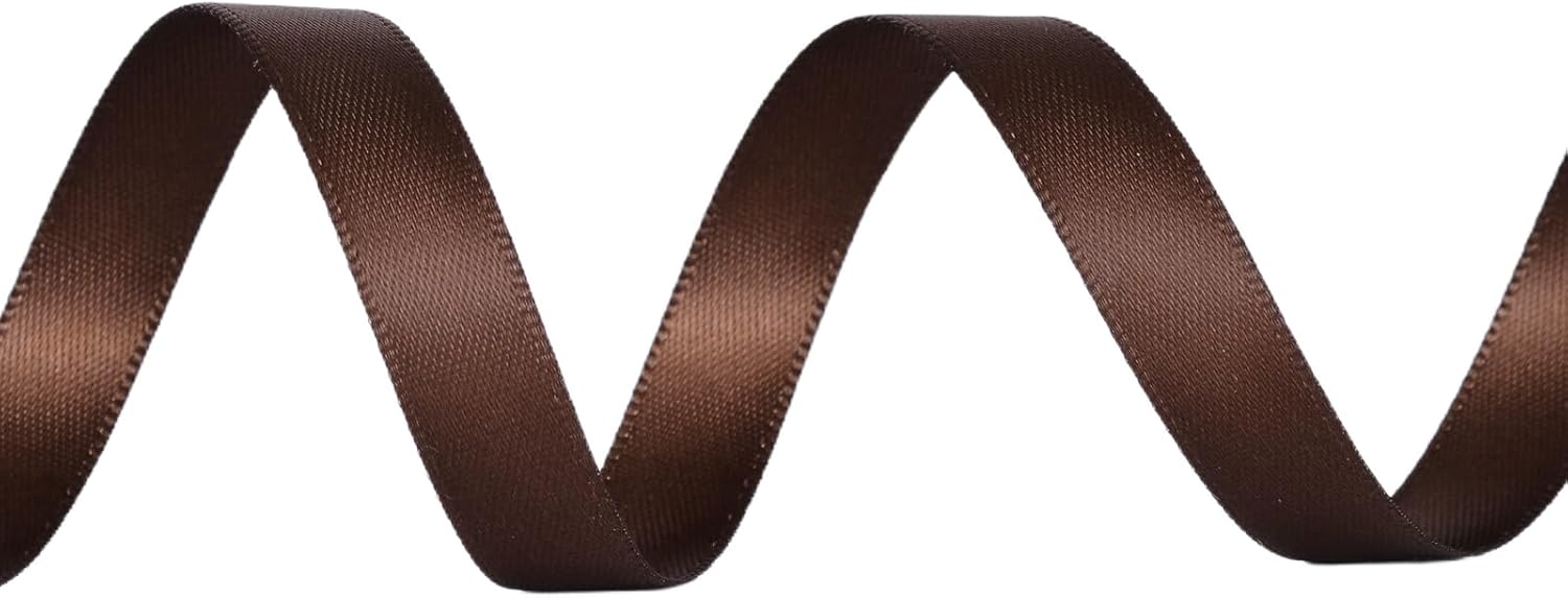 YAMA Brown Double Faced Satin Ribbon 3/8 Inch 25 Yards Thin Brown Fabric Ribbons for Gift Wrapping Crafts Hair Bows Wedding Party Decoration