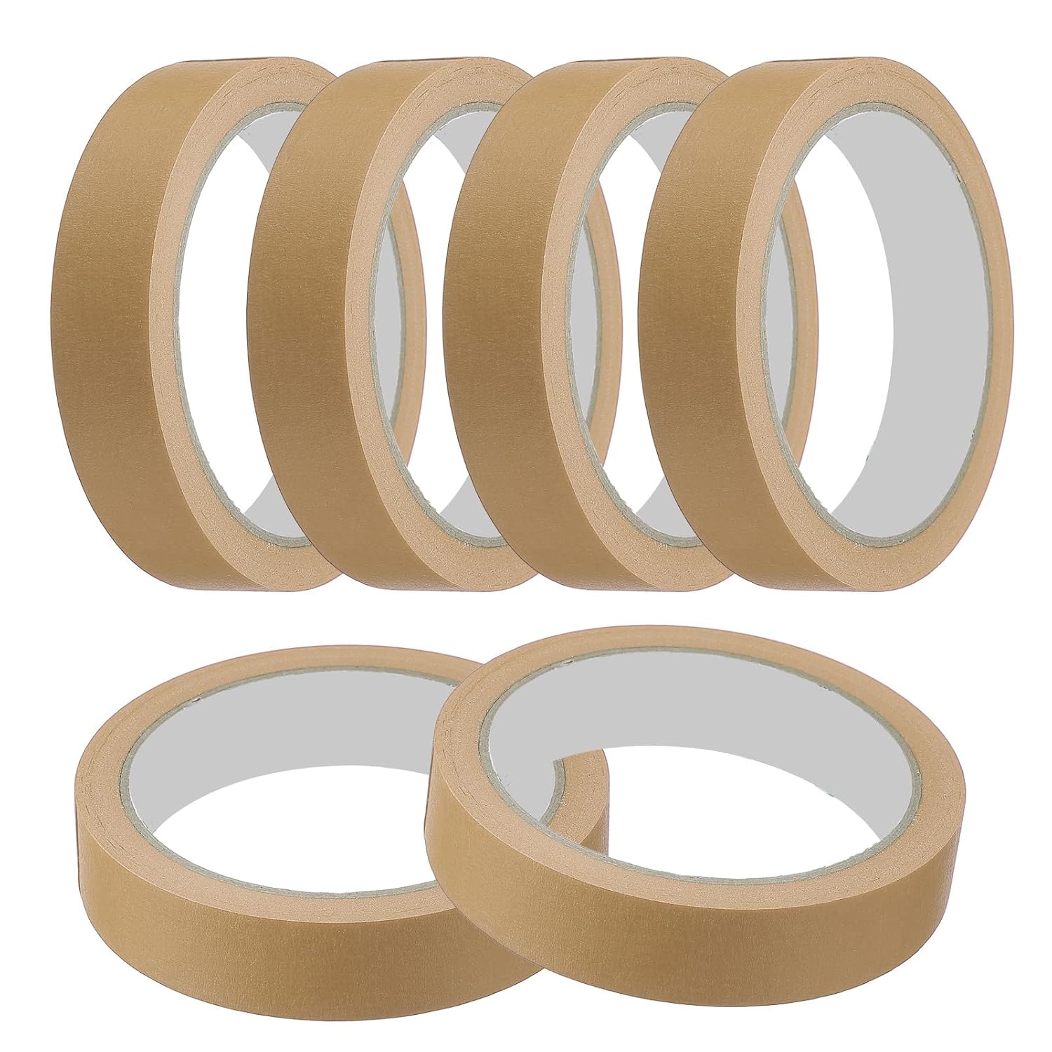 - The masking tape, provides here,is in size of: Thickness: 0.15mm(0.01inch); Size: 20mm x 20m(0.79inch x 21Yard); Color: Brown; Material: Crepe Paper In the package of: 6 Pack x Masking Tape